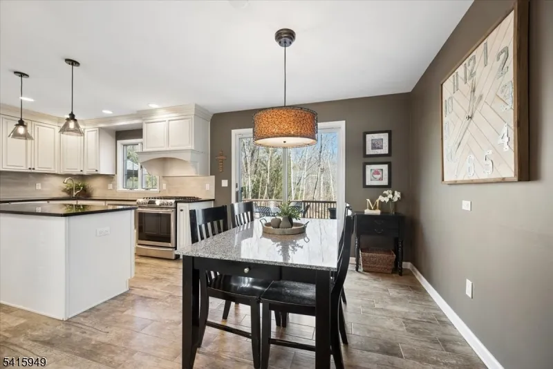 +"PublicRemarks": "Tucked at the end of a quiet cul-de-sac in one of Chester Township's most desirable neighborhoods, this exceptional Colonial is set on 5+ private acres, offering a combination of elegance, privacy, and natural beauty. Rolling manicured lawns lead to a tranquil brook and a picturesque landscaped pond with a charming waterfall, creating a peaceful outdoor setting that feels like a private retreat. An expansive deck with an integrated gazebo provides the perfect space for outdoor dining, entertaining, or simply enjoying the serene surroundings.A welcoming 2-story foyer opens to a spacious formal living room and elegant dining room. The eat-in kitchen features granite countertops, a center island, and a bright breakfast area overlooking the scenic rear grounds w/direct access to the deck + gazebo. The adjoining family room showcases soaring cathedral ceilings and a wood-burning fireplace, creating a warm and inviting gathering space. A private office with a second fireplace, powder room, and laundry room complete the main level. Upstairs, the primary suite offers peaceful views of the wooded rear property, a spa-like bath + a spacious WIC. Additional beds provide generous accommodations. The walk-out basement offers flexible space for recreation, fitness, or entertaining. This remarkable property presents a unique opportunity to enjoy exceptional comfort and privacy while remaining just minutes from Chester's charming downtown, boutique shopping, dining, and top-rated schools."