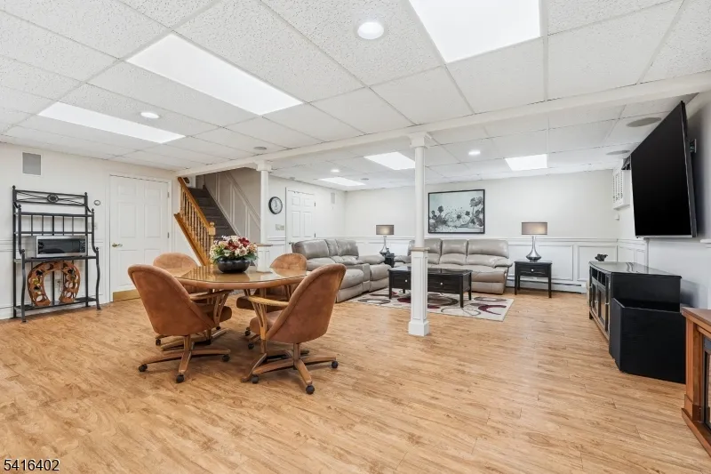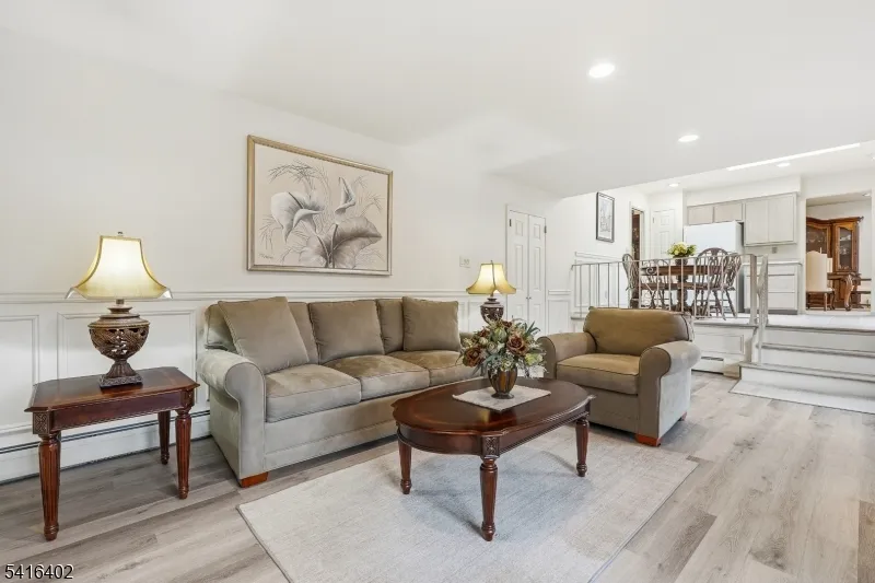 +"PublicRemarks": "Beautifully maintained 3-bedroom, 2.5-bath split-level home located in the highly sought-after Rolling Hills section of Wayne. Beautifully landscaped property! This home greets you with a spacious foyer and an effortless flow throughout enhanced by hardwood floors (under carpet), decorative moldings, wainscoting, and recessed lighting. The bright eat-in kitchen offers 42-inch cabinetry, abundant counter space, ample storage, an exhaust vent, and a skylight that fills the room with natural light. The expansive living room boasts a stunning bay window, while the formal dining room provides the perfect setting for entertaining. A cozy, windowed sunroom, and offering direct access to the back deck. The family room features a charming wood-burning fireplace, luxury vinyl plank flooring, and built-in window benches, while the first-floor mudroom/laundry room offers convenient backyard access and is complemented by an updated powder room.Three spacious bedrooms. Hot water baseboard heating, a new roof and chimney updates (both 2025), and a whole-house fan for energy efficiency during warmer months. Finished basement includes a second kitchen with sink, permitted stove, and stainless steel refrigerator perfect for entertaining, guests-- along with a workshop and additional storage area. 2-car attached garage with ceiling fan and storage, a large shed in back, in-ground sprinklers. Just minutes from parks, the mall, dining, and NJ Transit. One of Wayne's most desirable neighborhoods!"