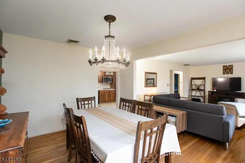 +"PublicRemarks": "Spacious 4-bedroom, 2.5-bath home with a 2-car garage set on a beautiful property with a sprawling backyard. The sun-filled main level features an expansive kitchen with seamless flow into the dining and living rooms, perfect for everyday living and entertaining. The primary suite offers an ensuite bath, while two additional generously sized bedrooms and a full hall bath complete this level. Hardwood flooring runs throughout the main floor and under carpeted areas. The ground-level lower level provides excellent flexibility with a large family room featuring a wood-burning fireplace and sliders leading directly to the backyard. This level also includes a 4th bedroom, office, laundry room, and direct access to the 2-car garage. Ideally located on a tree-lined northside street with easy access to major highways, NJ Transit, and abundant local shopping."