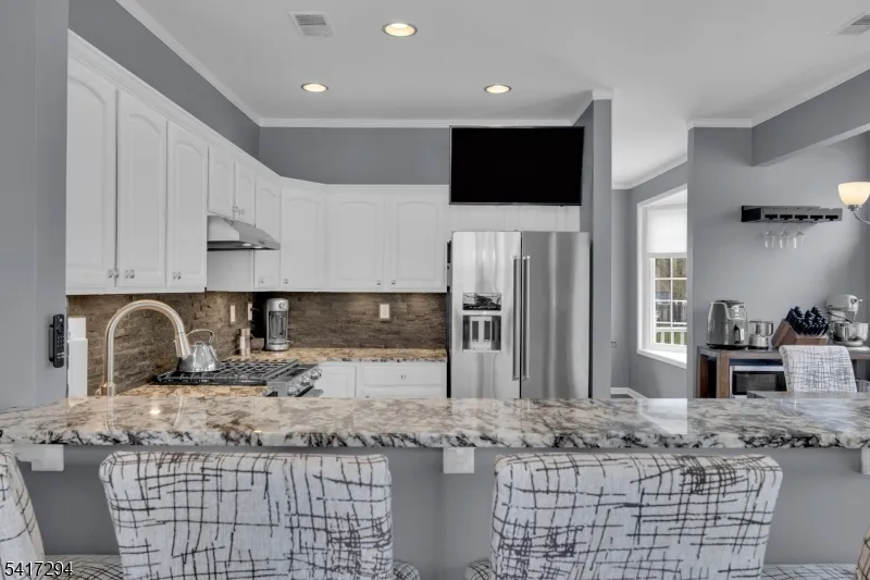 +"PublicRemarks": "Updated colonial in Brook Hollow, a desirable community in Hackettstown with miles of sidewalks; convenient to Rts. 80 and 46, as well as seconds to quaint downtown Hackettstown shopping, theater, dining, Centenary University, NJ Transit Train and more! Two story foyer greets you, leading to open floor plan with formal living and dining rooms, eat-in kitchen with granite counter tops and stainless appliances, breakfast bar and open to spacious family room with wood burning fireplace. The second floor offers 3 spacious bedrooms, main bath and primary suite with walk-in closet and full bath. Fully finished basement includes 26x22 rec room and 12x12 exercise room, as well as storage. Other highlights include newer deck with vinyl railings; 2 car attached garage, public utilities, window blinds, furnace, coil, A/C new in 2024; newer LVP flooring; new gas stove and more! Basement electric heat. $5000 flooring credit being offered. Brand New Roof to be installed prior to closing. Dining Room and Family Room have been flipped, FYI. Garage fridge remains with sale."