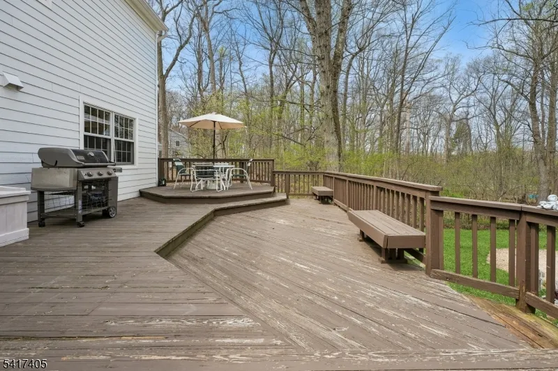 +"PublicRemarks": "Tucked away in one of Watchung's most sought-after neighborhoods, this classic Colonial sits gracefully on a picturesque 1.50-acre park-like property. Blending timeless character with thoughtful modern updates, this inviting home offers the perfect setting for today's lifestyle. A welcoming Entry Foyer leads to Formal Living Room with gas fireplace and Formal Dining Room featuring chandelier lighting and hardwood floors ideal for entertaining. The sun-drenched Family Room opens through sliding doors to an expansive deck, creating a seamless indoor-outdoor flow. The spacious Eat-In Kitchen is appointed with abundant cabinetry, quartz countertops and generous counter space, along with direct access to the backyard. A versatile first Floor Bedroom/Home Office, convenient Laundry/Mudroom, and access to oversized two-car garage complete the first level. Upstairs, the Primary Suite offers a private en-suite bath and walk in closet, complemented by three additional generously sized bedrooms, updated main bath, and ample closet space. The fully finished basement provides endless possibilities for recreation, work, or storage, including dedicated workshop/utility area. Outside, enjoy the serene, private fenced in backyard with sprawling multi level deck and patio, perfect for relaxing or entertaining. Ideally located near top-rated schools, premier shopping, vibrant downtown areas, parks houses of worship, major highways and NYC transportation, this exceptional home truly has it all."