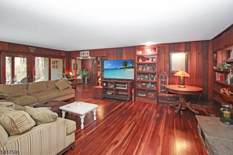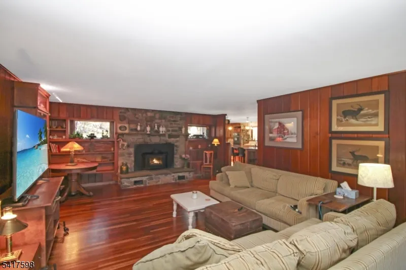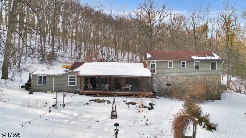 +"PublicRemarks": "Welcome home to an extraordinary retreat nestled on over six private acres - completely surrounded by state parkland - with no neighboring private properties adjoining in any direction. This is a rare opportunity to own unmatched privacy without the need for hundreds of acres. From your backyard, explore miles of preserved wilderness as you step directly into Worthington State Forest, continue into the Delaware Water Gap Recreation Area, and even access the iconic Appalachian Trail - all without ever setting foot on a road. The home offers a thoughtfully designed layout with inviting spaces throughout. The updated kitchen features a massive center island, Viking ovens, and hardwood flooring. It flows into a spacious living room with a wood-burning stove and access to a covered porch. The main level also includes a cozy den, 1st floor bedroom, office, and a full bath. Upstairs, you?ll find 3 generously sized bedrooms and 2 full baths. The basement is perfect for a workshop and the home is efficiently heated and cooled with a geothermal system, keeping utility costs low with only an electric bill, no oil or propane required. Outside, an older horse barn offers potential for restoration, making this property well-suited for a hobby farm. This property delivers a truly unmatched lifestyle in the heart of Northwest NJ. All of this, just minutes from Rt 80, 10 minutes to the Pocono Mountains, and only about 1hr from NYC, offering the perfect balance of seclusion and accessibility."