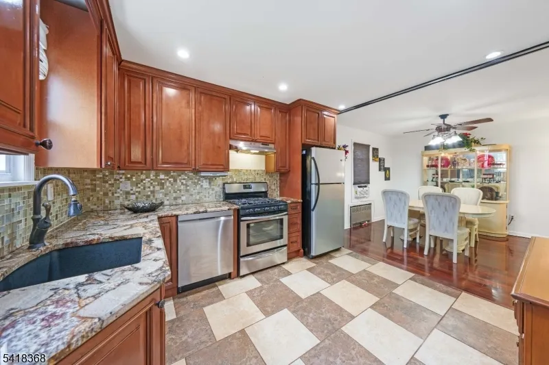 +"PublicRemarks": "Located in the sought-after Putnam Manor neighborhood of Union, this move-in ready Colonial balances classic curb appeal with contemporary design. The journey begins on the covered front porch that sets a welcoming tone. Inside, the main level feels expansive, anchored by rich hardwood floors and an open-concept flow that connects the living and dining areas directly to the heart of the home. The kitchen is a standout illuminated by modern recessed lighting that keeps the space bright at any hour. The second level offers three comfortable bedrooms and a spa-inspired bathroom that truly breaks the mold, boasting floor-to-ceiling marble-style tile, luxe gold fixtures, and a high-tech rainfall shower system with massage jets. If you need storage, the spacious walk-up attic provides a massive footprint for all your seasonal gear. For even more living space, the fully finished basement serves as a family room or "flex" space, complete with its own laundry area and a second full bathroom, adding incredible value and convenience. Outside you'll find a long driveway that leads to an oversized detached 2-car garage. The paved patio is the ultimate spot for summer hosting or weekend relaxation. For the commuter, the location is unbeatable you are just a half-mile from the Union Train Station and Kean University, with the bus routes of Morris Avenue just minutes away."