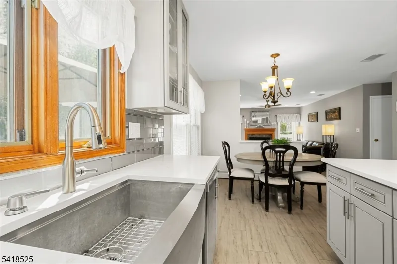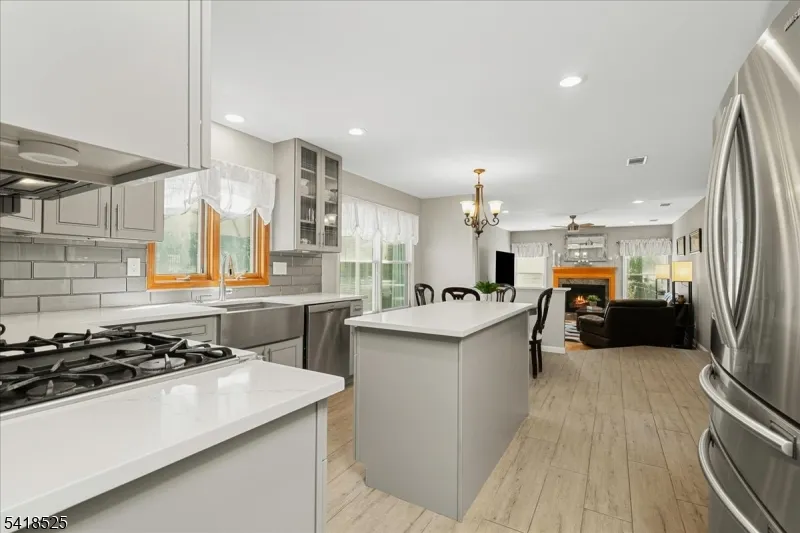 +"PublicRemarks": "Pride of ownership shines in this move-in ready 5BR Colonial in desirable Forest Hollow, Succasunna. A paver walkway leads to a covered front porch and 2-story foyer opening to the living room, formal dining room, and family room with gas fireplace. Updated powder room, and bright 3-season sunroom overlook a maintenance-free deck and private fenced yard. Renovated eat in kitchen features center island, custom cabinetry, quartz counters, backsplash, farm sink, and premium appliances. Additional highlights include hardwood flooring, recessed lighting, ceiling fans, 1st-floor laundry, and 2-car garage with main level entry. Finished full basement offers flexible living space and lots of storage. Public utilities & natural gas. Sidewalk-lined, tree lined street near schools, Horseshoe Lake, Rec Complex, shopping, Routes 10, 80, 206, 46 and mass transit."