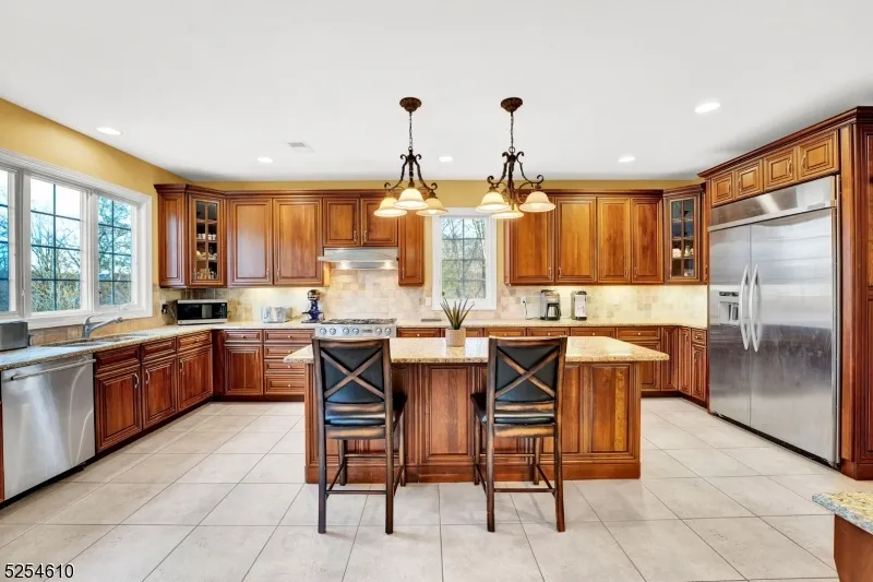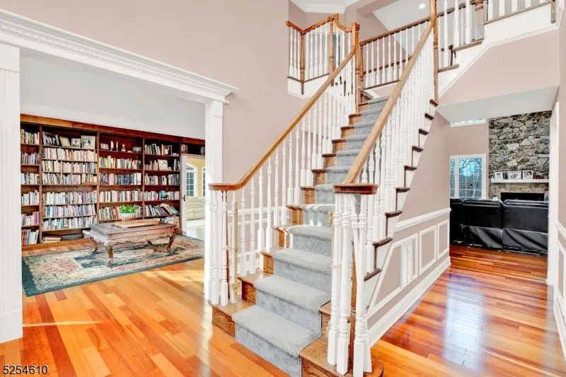 +"PublicRemarks": "Stately brick front colonial built by Toll Brothers in a cul de sac sitting on over 1.8 acres with 3 car garage provides plenty of space for entertaining and gatherings. Enter the 2 story foyer with formal living room w/ built inwall to wall book cases & spacious conservatory w/ palladian windows, formal dining room, office w/ french doors, 2 story great room with floor to ceiling gas fire place. Brazilian cherry wood floors throughout the first floor, spacious eat in kitchen with cherry wood cabinets, center island, walk out to deck, double oven, oversized refrigerator, 6 burner gas range, w full exhaust fan, dish washer, all stainless steel and granite counter tops. plus huge pantry, under cabinet lighting, Laundry room, coat closets and powder room complete the first floor. Two separate stair cases lead to the open landing, huge primary bedroom suite w separate sitting area, his/ hers walk in closets, luxurious primary bathroom with separate vanities, oversized shower and separate, jetted tub, 2 large bedrooms w/ jack & jill bathroom plus a 4th bedroom with private bath complete this floor. Basement is full unfinished with walk out sliding glass door and high ceiling ready for your entertainment quarters."