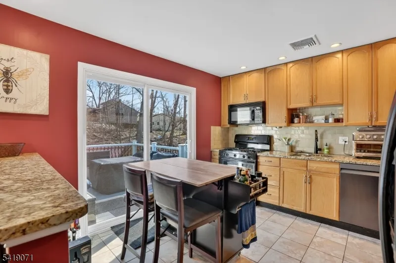 +"PublicRemarks": "Welcome to Bloomingdale, New Jersey where comfort, space, and a connection to nature come together in this beautifully maintained three-bedroom bi-level home. From the moment you arrive, you'll notice the freshly painted exterior and new bay windows that enhance both curb appeal and natural light throughout.The main level offers a functional layout with granite countertops in the kitchen, three well-sized bedrooms, and a fully renovated bathroom (2025). The living spaces are warm and inviting, perfect for everyday living and entertaining.The ground level provides exceptional flexibility, featuring a spacious family room, a dedicated office, and a recreation room with an attached full bathroom and laundry area. This level walks out to a paver patio, creating an easy indoor-outdoor flow.Step outside to enjoy a brand-new deck overlooking a landscaped backyard complete with a tranquil pond and waterfall. Multiple outbuildings offer ideal space for hobbies, storage, or workshop use. The property backs to trees, providing privacy and a peaceful setting.Additional features include a one-car garage, attic storage, central air conditioning, and city water, sewer, and natural gas.Conveniently located near major highways, shopping, and dining, and just minutes to Norvin Green State Forest, parks, recreation programs, a dog park, pickleball courts, and more this home offers a well-rounded lifestyle in a desirable Bloomingdale location."
