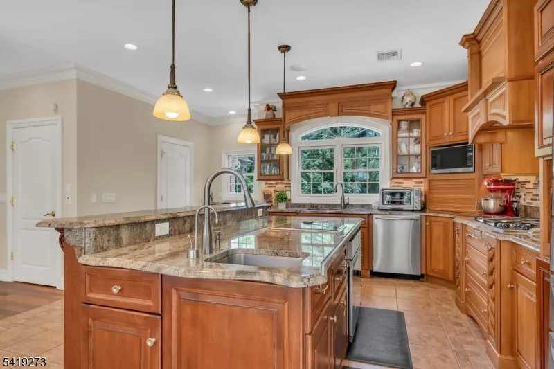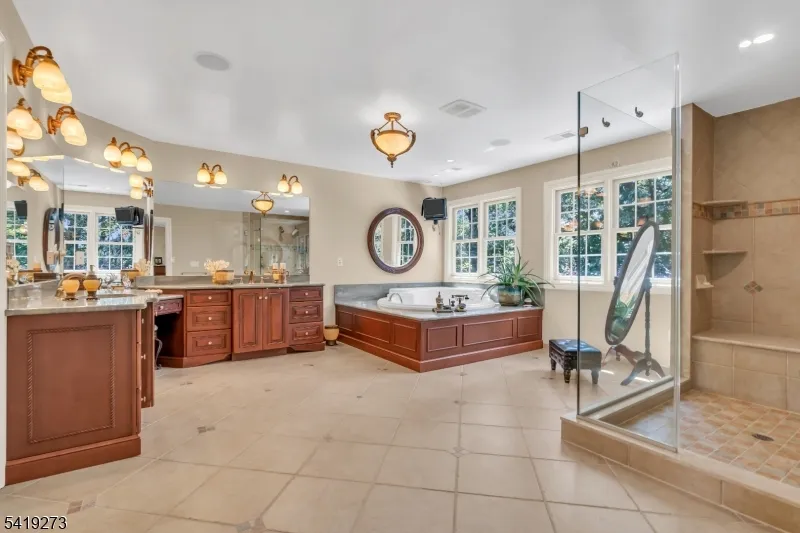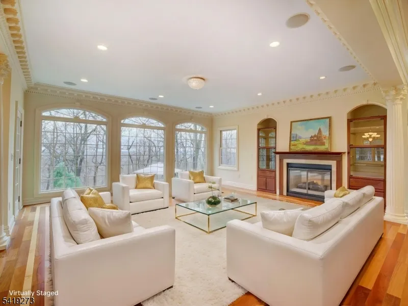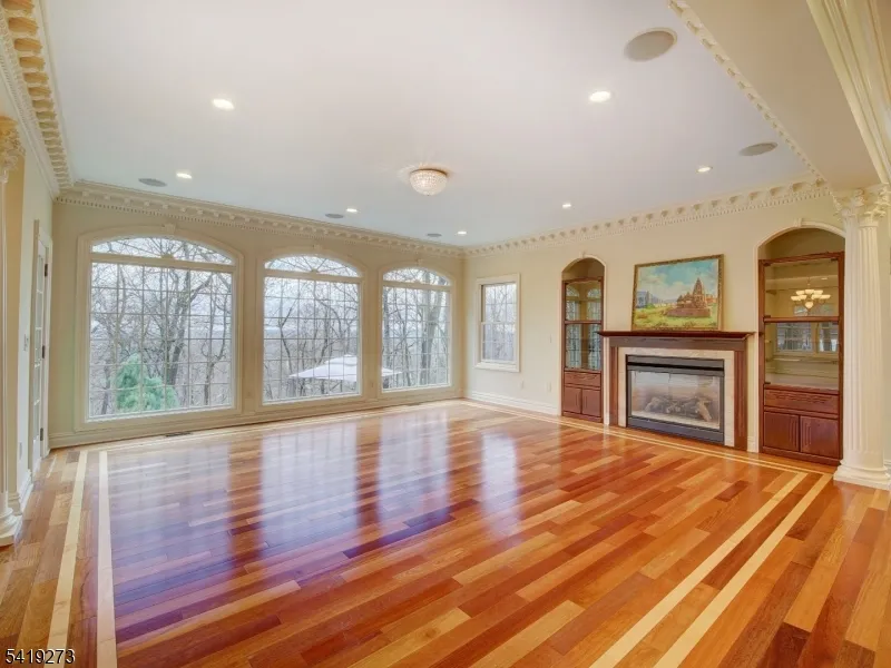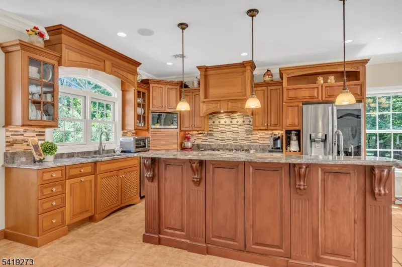 +"PublicRemarks": "Tranquility & nature at its best! This stunning 5-bedroom, 5-and-a-half bath residence exudes luxury from the moment you ascend the grand front steps into the breathtaking two-story marble foyer, crowned by a Swarovski Crystal chandelier. Designed for both impressive entertaining & serene living, the home features an expansive, state-of-the-art eat-in kitchen with a central island, vast storage, & a separate pantry. The living room, with its floor-to-ceiling Palladian windows, frames a picturesque backyard & boasts a fireplace, bamboo floors & graceful ornate pillars, elegantly defining each room. The formal dining room, with a coffered ceiling, comfortably seats ten, while the adjacent wet bar area with a built-in refrigerator elevates gatherings. A first-floor primary suite, powder room, & a tranquil library with French doors leading to a spacious porch offers an exceptional view of the front yard. Panoramic 4 seasons views from almost every room! Upstairs, the main primary suite overlooks the backyard pond with a waterfall & features a gas fireplace, his-and-hers closets, & an opulent ensuite bath with a jetted soaking tub & dual vanities. Two more large bedrooms share a Jack & Jill bath. Two spectacular primary master options with ensuites! The ground level houses a mudroom, recreation room & walkout access to the peaceful & inviting yard. The extensive hardscaping, mature trees & plantings, soothing water feature, fire pit, & serene, private setting lure you in!"