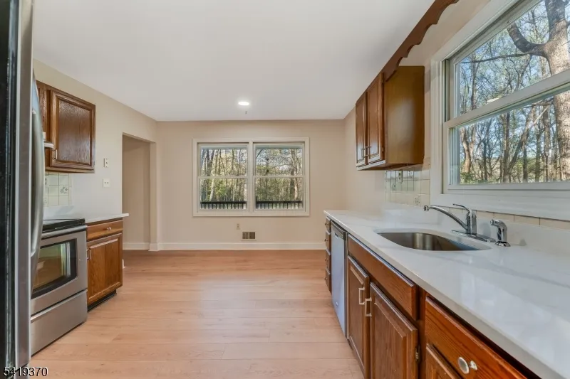 +"PublicRemarks ": "Spacious 4 bedrooms, 3 full baths and 2 car garage updated home is tucked away on 2.33 private acres, within the rolling hills of Hunterdon County. 10 Glenn Avenue feels like a deep breath the moment you arrive! Step inside to a welcoming foyer opening to a living room with fireplace and refinished hardwood floors, flowing effortlessly into the formal dining room. The eat-in kitchen features quartz countertops, stainless steel appliances, and abundant cabinet & counter space. The ground-level family room opens to the rear yard where nature invites you outside. Upstairs, four bedrooms offer a quiet retreat. The primary suite includes an ensuite bath, walk-in closet and linen closet. Completing the upper level are the 3 additional bedrooms, an updated full bath with dual vanity and linen closet. The unfinished basement has a full bath, rear entry, and windows offering potential for a guest suite or home office. Updates include roof and hot water heater (2"5 yrs), kitchen counters, flooring, bathrooms, painting, moldings, and plumbing & lighting fixtures. Also replaced are furnace & SS appliances.(exact age unknown) All of this with convenient access to NYC nearby major commuting routes and public transit. Sq ft per tax records. "