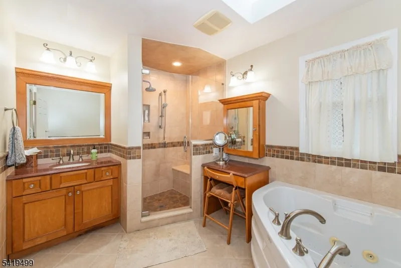 +"PublicRemarks": "This amazing home is situated on a fenced 1 acre lot in one of Succasunna's top neighborhoods and has everything you're looking for and more! The kitchen was upgraded with custom-built cherry cabinets, granite counters & center island as well as a Subzero refrigerator, DCS cooking range and Meile dishwasher. The kitchen opens to 22x22 great room with cathedral ceilings & gas fireplace. The 3 full bathrooms have all been upgraded with custom cabinets, Grohe faucets, glass door showers & color coordinated marble/granite counters, each with its own distinctive style. The master bathroom features a 2 person Jacuzzi tub, separate shower, skylight & heated floor. The living room, dining room and 1st floor office feature Brazilian cherry hardwood floors. The finished basement with walk-out to the garage adds another 700 square feet of living space including a large separate pantry area. The roof was replaced 3 years ago. Newer high end Marvin double-glass sealed insulated windows throughout the house. Recently upgraded whole-house water heater. Recessed lighting throughout the house with ceiling fans in all bedrooms. Sliders from the kitchen to the 800 sq ft paver patio with a wooded landscape backdrop and featuring an outdoor kitchen area with granite counters and storage area. This private retreat is still only minutes away from shopping, dining, schools, Routes 10, 80, 46 & 206 plus the Mt Arlington Train Station. Only a few miles from Horseshoe Lake beach & recreation complex."