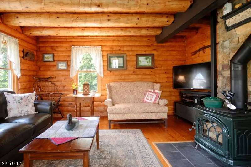 +"PublicRemarks": "A rare and refined country retreat, this spectacular custom log home is gracefully sited on more than 7.5 acres along a secluded private lane, offering unmatched privacy and sweeping natural views. Thoughtfully designed with exceptional craftsmanship, the home seamlessly blends rustic elegance with modern sophistication. The beautifully renovated kitchen is both timeless and functional, opening to warm living spaces accented by rich hardwood flooring throughout. The living room is anchored by a wood-burning stove, creating an inviting atmosphere ideal for both intimate evenings and sophisticated entertaining. A first-floor bedroom with full bath provides effortless one-level living or an elegant guest suite.The second level offers two generously sized bedrooms, a full bath, and a serene sitting room perfect for a private lounge, home office, or reading retreat. Throughout the home, windows and porches frame stunning views of the surrounding landscape, inviting the outdoors in. Multiple covered porches overlook the tranquil grounds, complete with a private pond, rolling lawns, and open vistas. A detached two-car garage with loft space offers flexible storage or creative potential. Pens for small animals add a unique lifestyle opportunity for discerning buyers seeking a refined rural escape. This exceptional estate delivers privacy, beauty, and comfort in a truly idyllic setting an extraordinary opportunity to own a luxury retreat surrounded by nature."