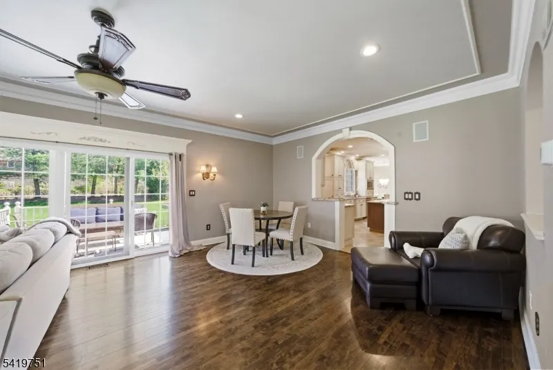 +"PublicRemarks": "Set in Woodshire Estates, one of Montville's most desirable sections, this impressive 5 bedroom, 3.5 bath colonial offers space, design, and a layout that works. A grand 2 story entry welcomes you in and sets the tone for the scale and light found throughout the home. The bright kitchen features a commercial-grade 6 burner range, pot filler, warming drawer, and high end finishes. The dining room makes a statement with a custom lighted drop ceiling, while hardwood floors and recessed lighting flow throughout the home. A large formal living room with gas fireplace adds to the generous main level layout. Added convenience of a first floor bedroom off the kitchen, which can be used for an office, or enjoy the added storage, perfect for organization. Upstairs, the primary suite offers a rare setup with a huge walk-in closet, private gym, and a spacious laundry room, all within the suite, along with a stunning bath. All bathrooms throughout the home are finished with gorgeous design. Custom closets are featured in all second floor bedrooms. The finished basement with a full bath adds flexible space for recreation, work, or guests. Outside, the large backyard is open, spacious, and ideal for both relaxing and entertaining. With five bedrooms, beautiful finishes throughout, and a long list of features, this is a home that needs to be seen in person to fully appreciate. EV charging station, generator, upgraded 200 amp electric, indoor/outdoor speakers, & Verizon Fios available."