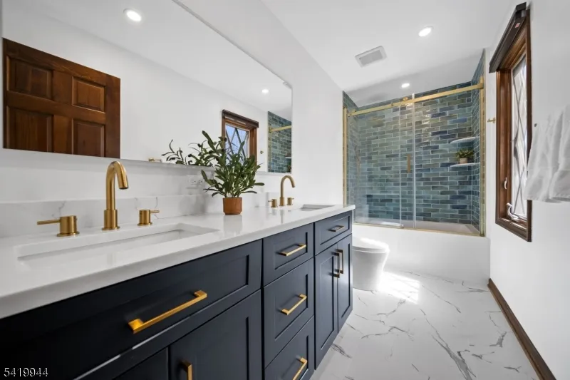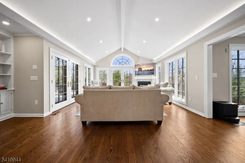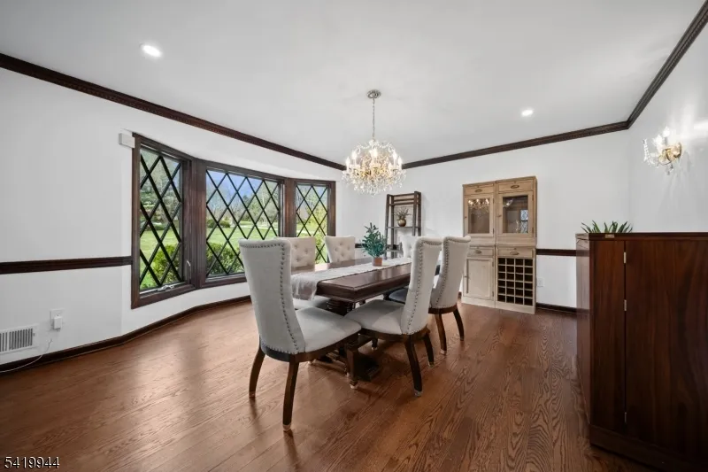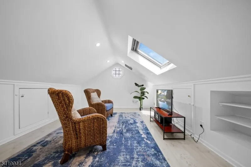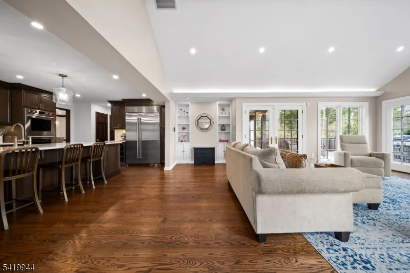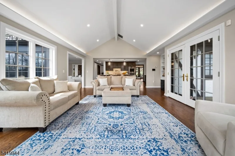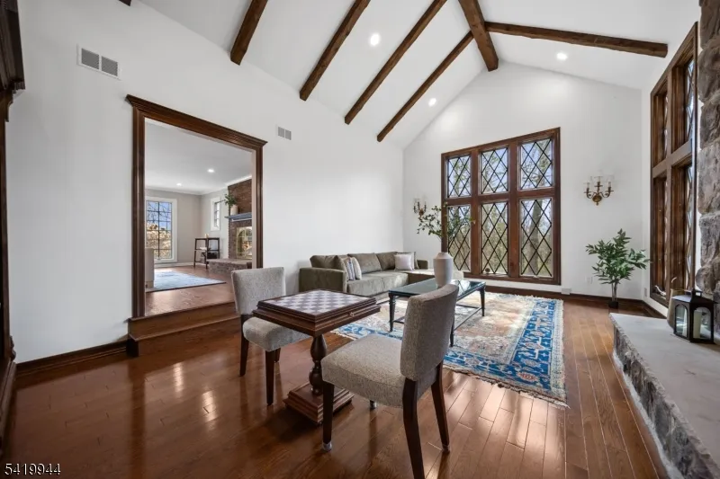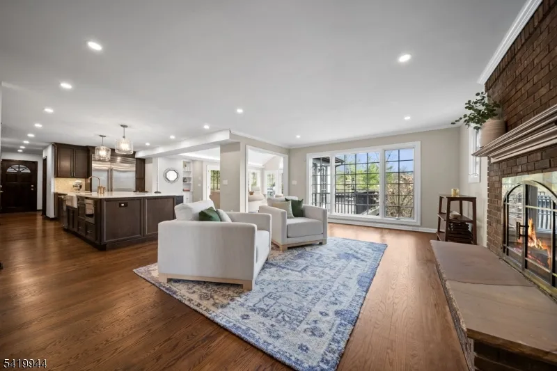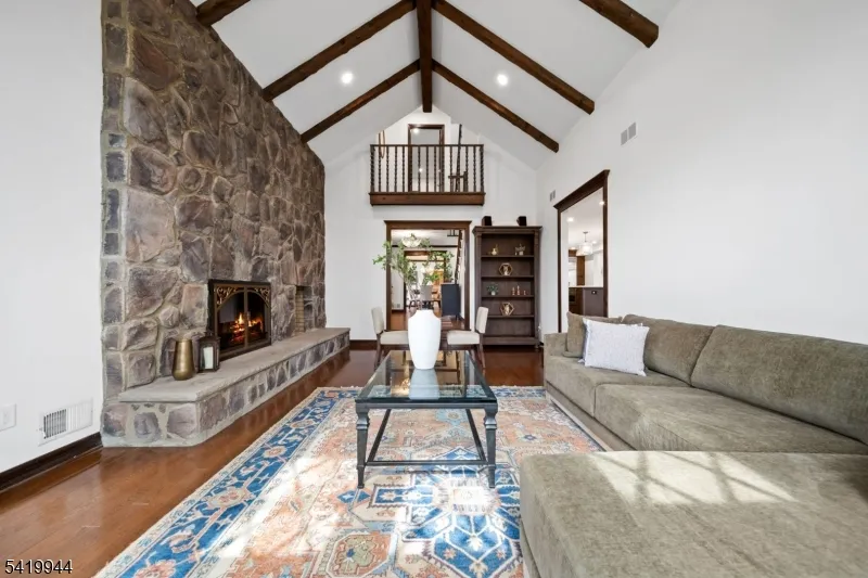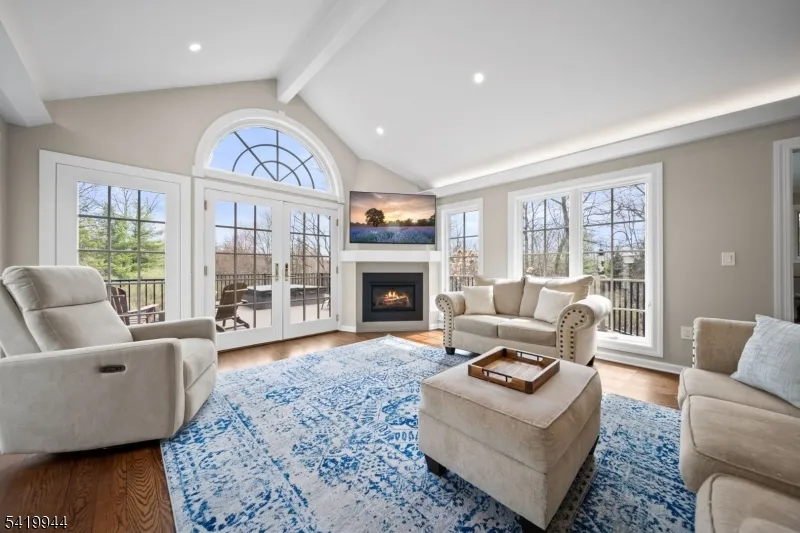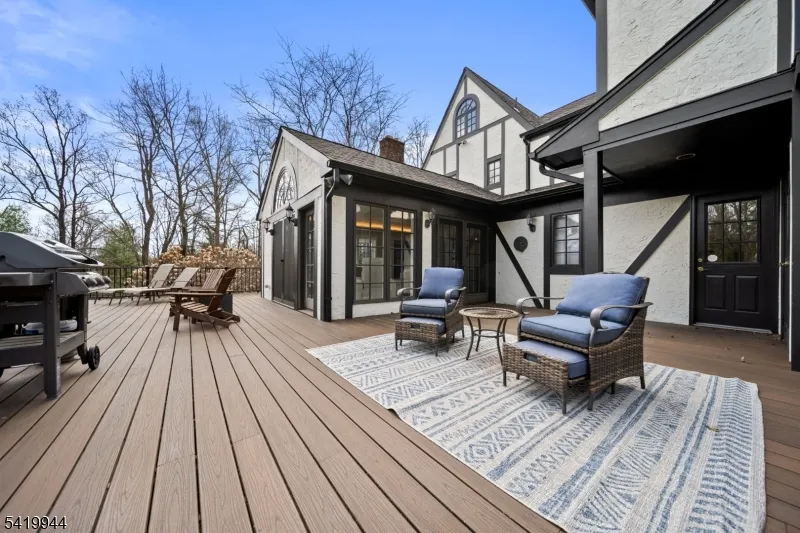 +"PublicRemarks": "Welcome to this extraordinary Tudor Colonial set on three private acres, offering four levels of elegant living space. Architectural details include a dramatic formal living room with cathedral ceilings, a stone fireplace, and floor-to-ceiling diamond-pane windows. A banquet-sized dining room leads to a stunning chef?s kitchen (2024) with Sub-Zero and Wolf appliances, custom cherry cabinetry, quartz countertops, and an 11-foot center island. The kitchen flows seamlessly into a cozy den with a wood-burning fireplace and a sun-filled family room with a gas fireplace, both overlooking beautifully landscaped grounds and a newer Trex deck. Upstairs, four spacious bedrooms include a luxurious primary suite with smart shades, dual walk-in closets, and a spa-like bath with walnut cabinetry, soaking tub, oversized shower and water closet. A secondary en-suite and two additional bedrooms complete the level. The third floor offers flexible bonus space, currently used as an office and TV room. The finished lower level features a walk-out sitting area, gym, game room, wet bar, full bath, workshop, and storage. Additional highlights include a paver driveway, epoxy-finished three-car garage with first-floor access, and a spacious laundry room. This home offers a rare blend of elegance, comfort, and privacy, and is just minutes to Midtown-direct Morristown Train station, a vibrant downtown, parks, and trails. Come see it for yourself today!"