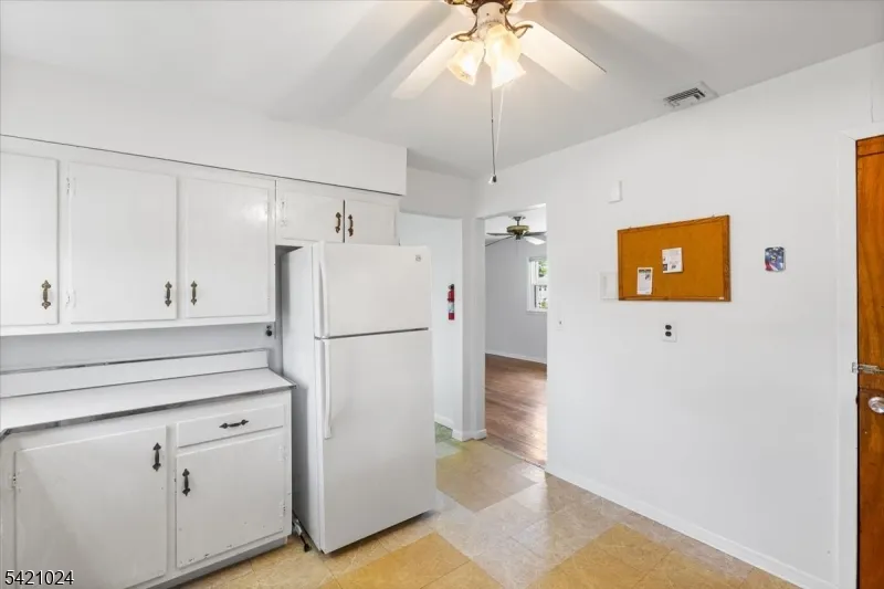 +"PublicRemarks ": "Excellent investment opportunity at the end of a cul-de-sac! Originally this Ranch offered 3 bedrooms however modifications for improved accessibility have been made including a Roll-in Shower, ramp to the side porch entrance & the Laundry on the main level. Currently configured with two bedrooms, the third has been converted to a convenient first-floor laundry area, offering added ease for one floor living. If desired, the space can be returned to a third bedroom by relocating the washer and dryer to the basement. Original hardwood flooring runs throughout the Living Room & bedrooms with vinyl tile in the Kitchen, Laundry Room & Bathroom. The kitchen is open and overlooks the back yard and has access to the screened porch, a great place to sit & enjoy the summer breeze. The full unfinished basement has high ceilings & room for storage or a workshop. SOLD AS-IS "