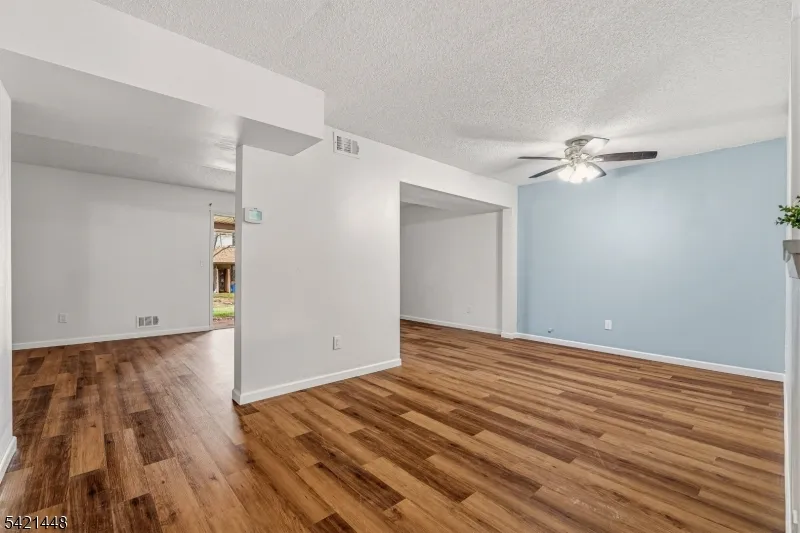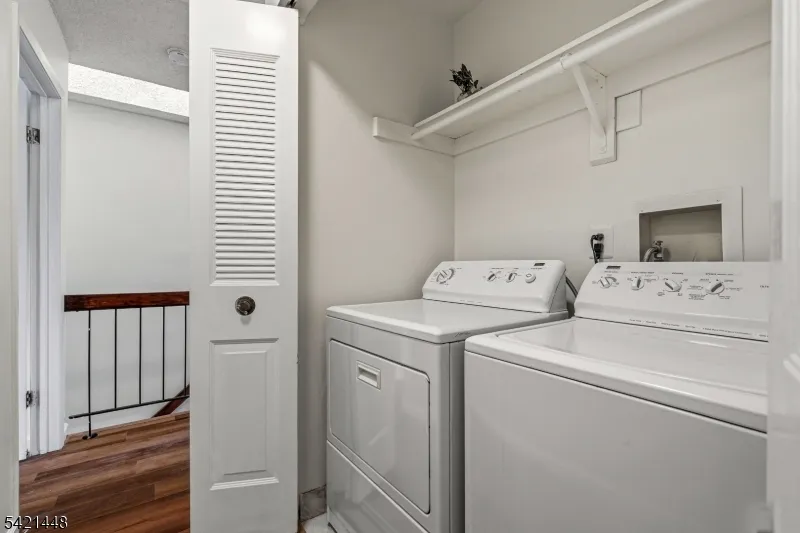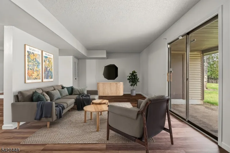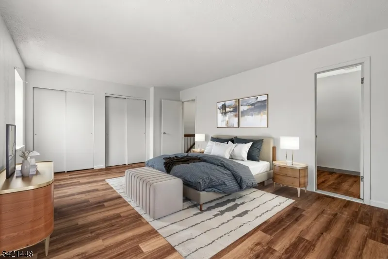 +"PublicRemarks": "Beautiful freshly painted 2-bedroom, 1.5-bath, two-story townhome featuring luxury vinyl plank flooring throughout, an updated powder room, and a modern kitchen with quartz countertops, cherry raised-panel cabinetry, stainless steel appliances, glass tile backsplash, and new sink and faucet. The open dining and living area boasts a ceiling fan, sliders to a covered patio with storage, and a private, park-like backyard perfect for entertaining. Upstairs offers high ceilings with a skylight, two spacious bedrooms including a primary suite with dual closets and direct access to a full bath with tub/shower and glass doors, plus a convenient laundry closet and ample storage including attic access. Additional highlights include an end-unit location with extra privacy, newer appliances, updated lighting, new outlets and switches, and a furnace closet. Enjoy community amenities including pool, playground, basketball and tennis courts, and clubhouse, all just minutes from NJ Transit trains, major highways, and shopping."