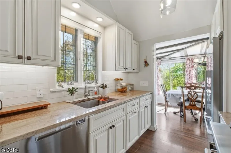 +"PublicRemarks": "Lake Mohawk Gem! This original Arthur Crane 3-BR, 1.5-bath home features seasonal lake views and an unbeatable location just a short walk to the country club, beaches, and local dining. Inside, the home's kitchen and main bath are beautifully updated, perfectly complementing its classic architectural details. HW floors run throughout, while vaulted ceilings create an open, airy feel filled with natural light. A stunning stone fireplace anchors the living space, adding warmth and rustic charm. A versatile loft enhances the home's unique architecture and can easily serve as a guest bedroom or private office. A walkout basement provides additional flexible living or recreation space, complete with laundry room, workroom, and storage. Outside, the terraced yard offers multiple outdoor entertaining areas, ideal for gatherings, relaxing, or simply enjoying the peaceful surroundings. The property also includes private parking for 3 cars--a premium in LM! Vacation where you live in this tranquil lake community--between the water and the town surrounding it, there's plenty to do in LM. Start your day swimming or enjoying the view on a boat or kayak--back on land, take a walk/jog on the bridal path and head to the boardwalk. Enjoy a delicious meal at the country club, or any of the other restaurants on the plaza. Lake Mohawk Pool, Golf and Tennis clubs are optional. Natural gas & public water. SQFT per tax records."