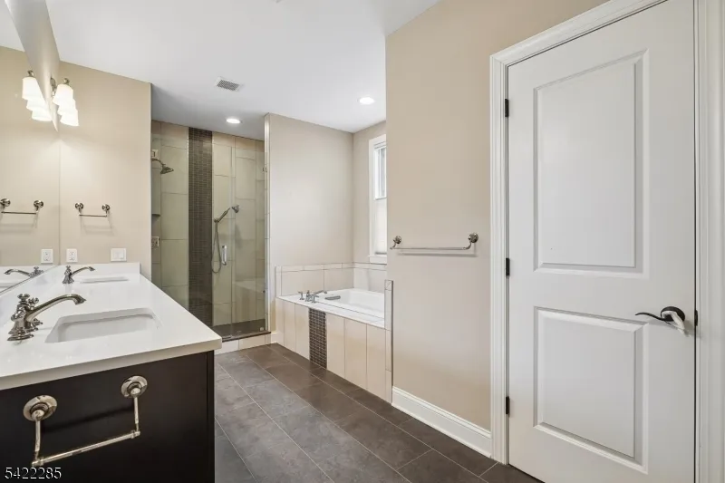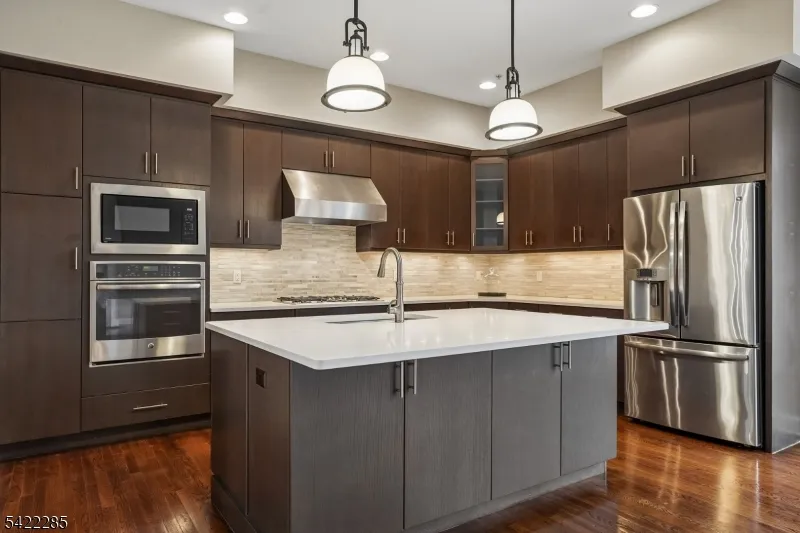 +"PublicRemarks": "A rare offering in The Brownstones, this sophisticated end-unit townhome captures the timeless appeal of a classic New York-style brownstone in Convent Station. Set in a small, architecturally distinctive enclave with Belgian-block-curb streets, paver driveways, and patios, it offers quality construction, refined finishes, and exceptional flexibility. The location is a true lifestyle advantage, close to the train, Morristown Medical Center, Morris County Golf Club, downtown Morristown, dining, shopping & everyday conveniences. Approx. 4,000 sq ft features 9' and 10' ceilings, hardwood floors, designer lighting & Masonite raised panel doors. The main level includes an inviting foyer, expansive living and dining areas, and an open kitchen/family room with a gas fireplace, an oversized center island, granite counters, stainless steel appliances, a wet bar, a wine fridge, wine storage, and access to a spacious balcony. Upstairs, the primary suite offers a luxurious bath, walk-in closet, and finished attic access, while two additional bedrooms share a generous full bath. The ground level includes a large den, a private office or guest bedroom, a powder room, a covered patio & spacious garage with extra storage. Includes a designed space for a future elevator.Oversized two-car garage with storage and frost-free hose bib. A distinctive home offering elegant, low-maintenance living in one of the area's most convenient settings."