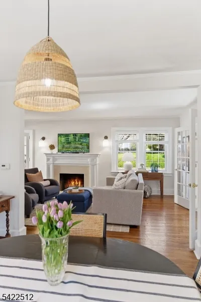 +"PublicRemarks": "Beautifully situated near the Midtown Direct train and downtown Millburn, this charming 3-bedroom colonial home offers exceptional comfort, character, and convenience on a professionally landscaped lot. Filled with natural light, the inviting open floor plan features hardwood floors, an entry vestibule with a built-in window seat, and French doors opening to a spacious living room with a wood-burning fireplace. The dining room flows seamlessly to the outdoors with sliding doors leading to an oversized deck and private backyard, an ideal setting for entertaining or everyday enjoyment. The kitchen is thoughtfully appointed with granite countertops, new stainless-steel appliances, and a banquette-style breakfast area. Completing the first floor are a convenient powder room, a comfortable family room, and an additional space perfect for a home office. Upstairs, the second level features a primary bedroom with two oversized custom closets, along with two additional bedrooms and a full hall bath. The lower level adds valuable living space with a large recreation area, a laundry room and storage. This special location offers close proximity to several local schools, just blocks from multiple campuses, including multiple nursery schools/day-care options, South Mountain Elementary, Washington School, Millburn Middle School & Millburn High School. A wonderful opportunity to own a warm and welcoming home with generous living space in a highly desirable location."