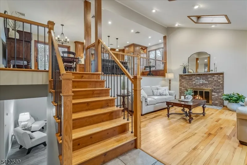 +"PublicRemarks": "Welcome to 97 Skyline Drive, a stunning 4-bedroom, 2.5-bath retreat set on nearly 3 private acres near the end of a quiet cul-de-sac. From the moment you arrive, this home delivers resort-style living with an in-ground heated pool, two expansive decks, and a lush, wooded backyard that transforms into a canopy of privacy each spring and summer. The open-concept main level is flooded with natural light through soaring ceilings, skylights, and oversized windows. A gas fireplace anchors the living room, while the chef's kitchen dazzles with a professional Wolf gas range and hood, custom cabinetry with full-depth pull-out shelves, and a large island with its own prep sink. A charming window seat with built-in drawers, device charging ports, and a kick heater completes the kitchen's warmth and function. Step through the dining room or primary bedroom onto the upper deck perfect for sunset dinners. Below, the lower deck flows directly to the pool area, wrapped in mature landscaping that creates an intimate, wooded oasis all season long. The level, fenced backyard offers generous space for gatherings. The ground level offers even more room to spread out, a spacious family room with sliding doors to the deck. This level also features a dedicated laundry room and access to the garage. And there's still more: a finished room below provides the perfect flex space for a home theater, gym or playroom. With 3 full levels of finished living space, this home truly has room for everyone."