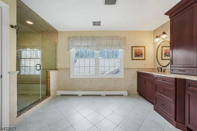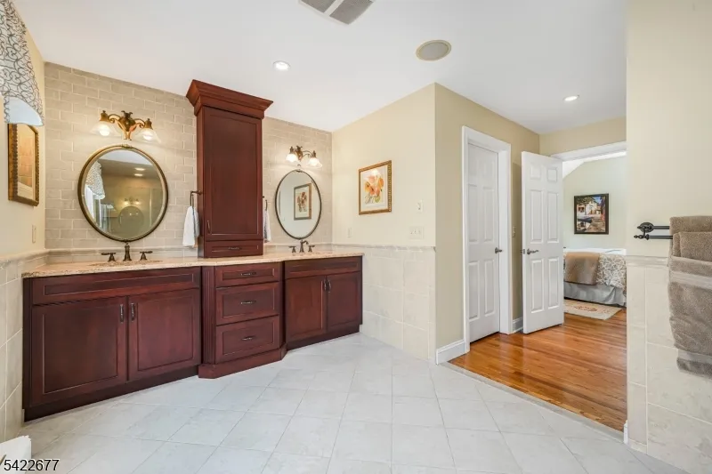 +"PublicRemarks": "Expanded living layout with separate private suite, ideal for extended flexible living. This home features an updated Kitchen with custom cherry cabinets, paneled stainless steel appliances, Thermador cooktop/double ovens, Subzero Refrigerator, granite countertops, center island, wet bar w/sink and wine cooler. Hardwood floors throughout, updated flooring on the first floor and primary bedroom. Family Room includes a gas fireplace with stone surround. Custom moldings throughout. Primary suite offers tray ceiling, dual walk-in closets with custom built-ins, en-suite bath with tiled shower, granite seat, body sprays, frameless glass door, and granite vanity. The 2nd level includes a Junior Suite, three additional Bedrooms with walk-in closets and a full hall Bath. Other outstanding features include central vacuum, security system, and built-in audio wiring. Private two-room Suite with separate entrance includes Living area, Bedroom, walk-in closet, gas fireplace, full bath, and Kitchen with custom cabinetry, sink and microwave. Additional features include a Mudroom, Laundry Room w/utility sink, built in ironing board, and storage space. Step outside to enjoy a fully fenced, professionally landscaped yard with underground sprinklers, paver walkways and patio, bluestone porches, a Belgium block driveway, a charming gazebo with solar lighting, and storage shed, perfect for relaxing or entertaining outdoors. Tree-lined street with easy access to major highways and commuter routes."