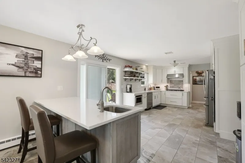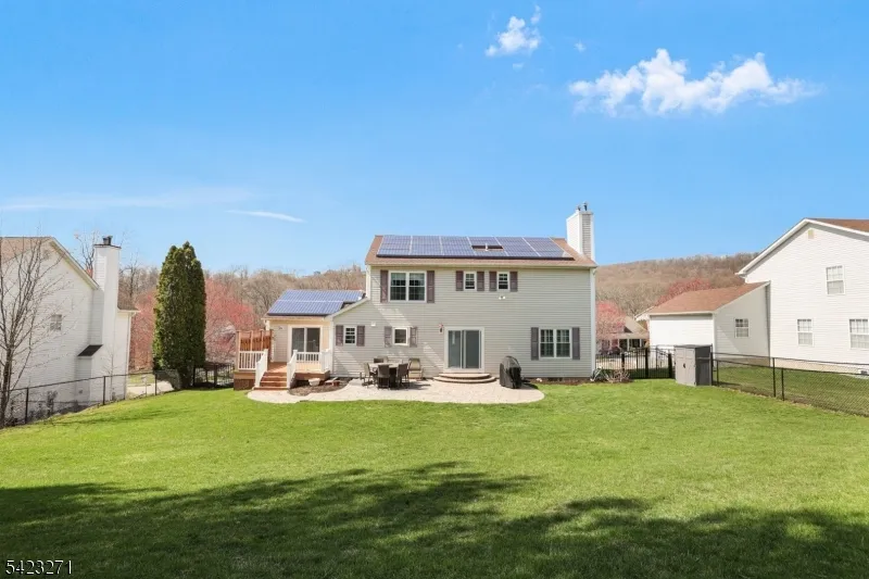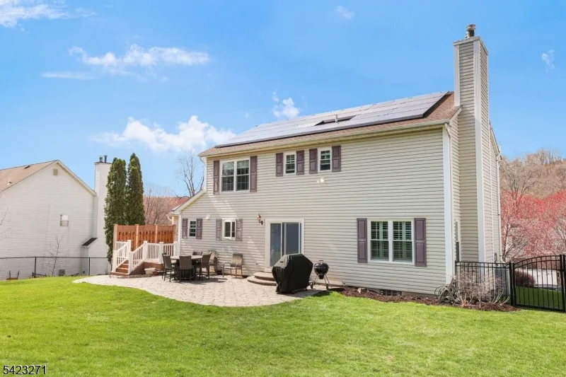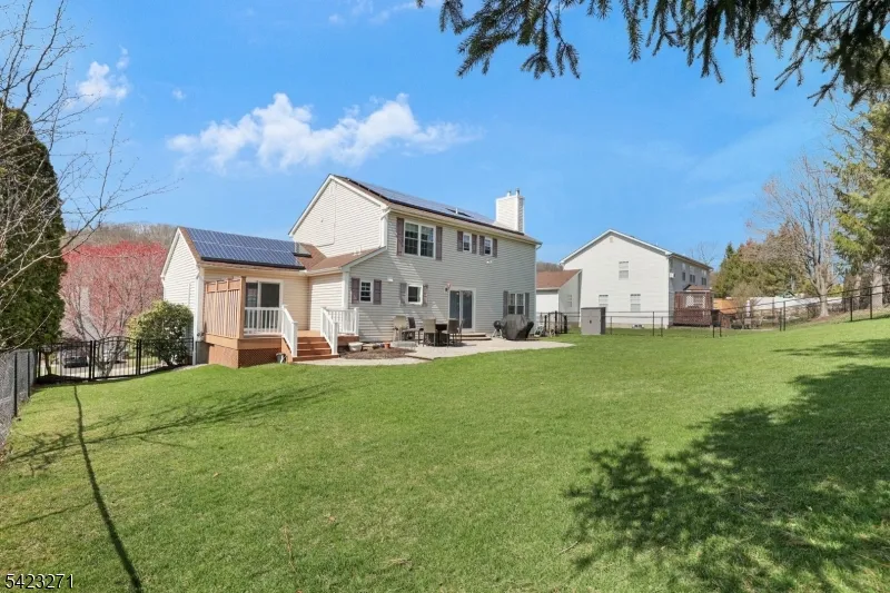 +"PublicRemarks": "Welcome home to this incredible 4BR, 2.1 Bath Center Hall Colonial. 1st floor features a large updated eat in kitchen with quarts counters, stainless steel appliances, double wall oven, wine fridge. Huge great room, dining room, living room and powder room complete this floor. Second floor features a large primary bedroom with updated full bathroom, 2 walk in closets, 3 additional bedrooms with custom closets, full bathroom and laundry. Private backyard professionally landscaped with composite deck and stone patio. Additional amenities include underground sprinkler system, solar panels, walk up attic, large basement with high ceilings, 2 car garage, Pella windows/doors. Conveniently located close to shops, restaurants, rt80, rt46 and easy access to NYC. Nothing to do here but move in. A must see!"