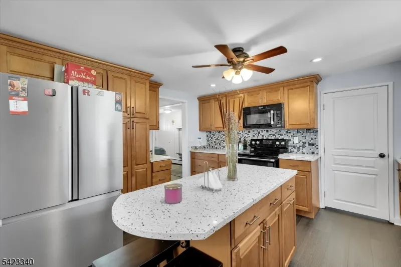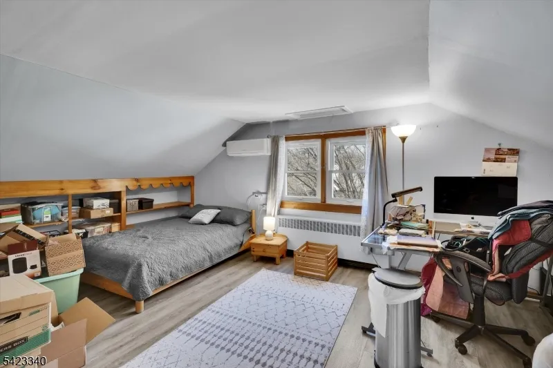 +"PublicRemarks": "Nestled above on a scenic hill overlooking the charming town of Milford, this well-built Cape Cod offers a perfect blend of character and modern updates. The home features updated kitchen and baths (2015), along with newer laminate flooring and a cozy wood-burning fireplace. The kitchen is designed with quality in mind, showcasing Craftsman soft-close cabinetry, a tile backsplash, undermount double sink, and distinctive recycled glass countertops. Additional highlights include an enclosed sunroom, welcoming front porch, upstairs sitting area, first-floor bedroom, first-floor laundry, and abundant storage throughout. Thermopane windows have been updated for improved efficiency. For hobbyists or those needing workspace, the property offers two dedicated workshop areas one in the garage and another in the basement. A newer Weil-McLain boiler (2015) adds to the home's reliability. The fully fenced yard provides privacy and outdoor enjoyment, while the location offers convenient walking access to schools, shops, restaurants, and the Delaware River. Recent improvements include vinyl siding, updated laminate flooring, and mini-split ductless A/C units. Public water and sewer complete the package. Move-in ready don't miss this opportunity!"