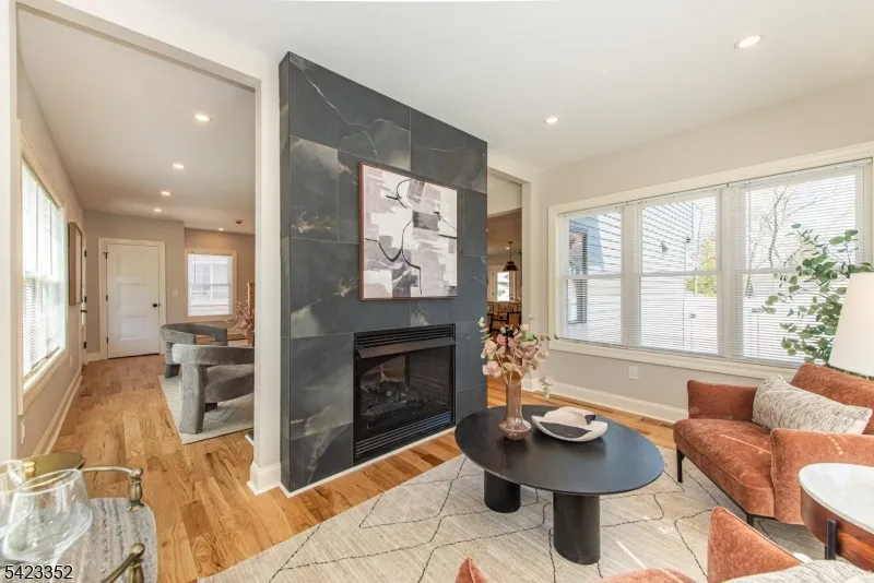 +"PublicRemarks": "This newly Renovated Contemporary Colonial is set along one of Bloomfield's beautiful tree lined streets, where classic refinement meets modern luxury. A dramatic front entrance with a striking glass door, curated lighting, and expansive windows creates a warm welcome at dusk. The home offers four bedrooms, four full baths, and a first floor powder room. The spacious living room with a two sided fireplace opens to an additional sitting room, while oak hardwood flooring flows throughout. The bespoke kitchen and wet bar feature custom cabinetry, Calacatta quartz countertops, Klien appliances, and a walk in pantry. The primary suite is a sanctuary with a spa inspired bath, a walk in shower for two, rich finishes, a custom closet, and oversized windows framing mesmerizing views. Additional bedrooms are generously sized, filled with natural light, and include custom closets. A serene third floor suite provides an extra bedroom, den, and full bath with treetop vistas. The inviting family room offers custom built ins, a full bath, and a dedicated laundry room. From the kitchen, step onto your private deck and custom patio overlooking an expansive yard with newly planted landscaping and full property irrigation. The home includes efficient two zone heating and cooling for year round comfort. A modern tankless water heater provides endless hot water and energy efficiency. Privacy fencing completes the outdoor space, all moments from NYC transit, great amenities, and beautiful parks."