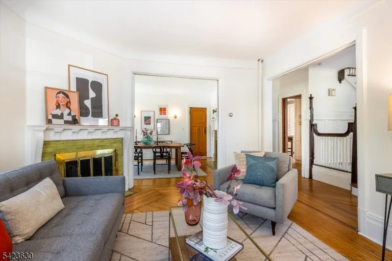 +"PublicRemarks": "Brooklyn brownstone meets Montclair turn of the century in this South End beauty where a funky vibe & charming orig character come together. From the moment you arrive, the inviting wraparound porch sets the tone; perfect for morning coffee or relaxed afternoons. Inside, a gracious, open foyer welcomes you w/ a beautiful period staircase & a unique preserved built-in cabinet w/ glass drs. The first flr offers a seamless flow from the spacious foyer to a (sun-filled) living room & a sizable dining rm perfect for gathering, all rich w/ architectural details. 2 orig. tiled fireplaces, classic built-ins, high ceilings, wood wainscoting & intricate moldings that add warmth & charm throughout. The thoughtfully ren. kitchen blends modern convenience w/ personality, feat. stainless steel appliances, quartz countertops, & an adorable banquette ideal for casual dining.Upstairs, the wide staircase leads to 3 generously sized bdrms plus a versatile 4th rm currently used as an expansive WIC but easily adaptable as a home office or additional bedroom. A spacious, updated bathroom w/ double sinks completes this level. Third flr offers 2 addl bdrms & a full bath, a perfect spot for guests or WFH. Outdoors, enjoy entertaining on the rear patio or unwinding on the porch. Ideally located near 2 NYC-direct trains & just a short stroll to Montclair's vibrant downtown renowned for its restaurants, cafes, shops, & arts scene. This home perfectly balances convenience, character, & style."