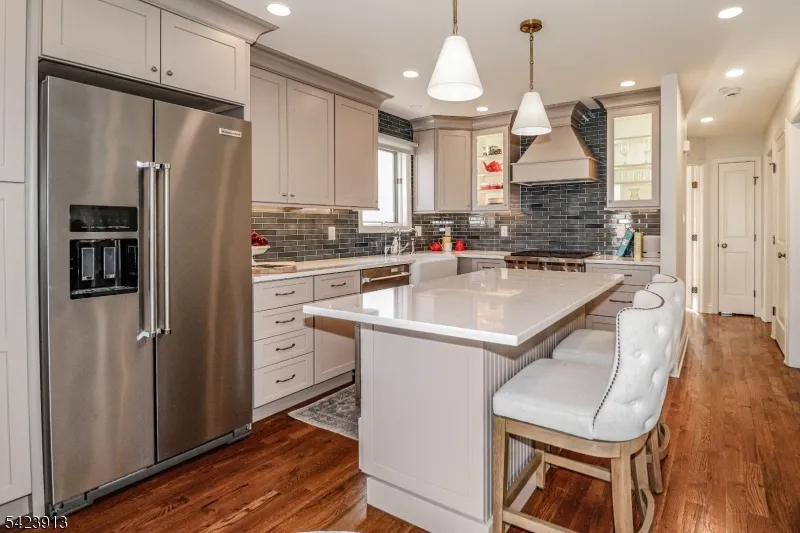+"PublicRemarks": "Move right into this beautifully renovated and expanded Metuchen Cape Cod style home, ideally set on a quiet street with park views and a generous backyard designed for entertaining. The standout chef's kitchen features a Wolf range and oven, Silestone quartz countertops, a large center island, and a custom pantry with pull-out shelving blending style and everyday functionality. Flexible living is key here, with three bedrooms including a first-floor primary suite perfect for guests, or a private retreat Bonus room ideal for Home Office, Library or Den, with direct access to a Trex deck with built-in lighting. Bathrooms are tastefully updated with traditional elegance and a modern sensibility. Not included in above-ground square footage, the fully finished basement adds exceptional bonus space with two separate rooms, pocket doors, a full bath, and laundry ideal for work, play, or relaxation. A rare find: the finished garage, complete with pine plank ceiling, insulation, mini-split system, and backyard access perfect for a home gym, studio, or creative space. Outside, enjoy cobblestone walkways, professional landscaping, and a stone patio made for effortless outdoor living. With new Hardie Plank siding and a new roof, this home offers both style and peace of mind. **Showings begin on Friday April 17**"