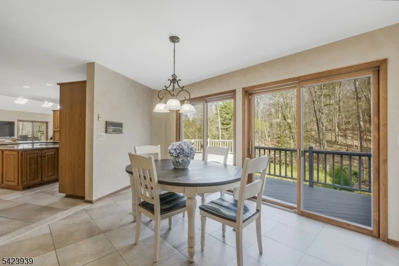 +"PublicRemarks": "Welcome to this stunning 1980's custom contemporary home with in-ground pool in the desirable Radcliffe Estates section of Sparta, nestled on nearly 4 acres of property at the end of a private cul-de-sac. Enter into the inviting foyer with generous living and dining space, flowing seamlessly into the sprawling open concept kitchen with oversized island, charming walk-out breakfast nook, walk-in pantry, granite countertops and stainless steel appliances. A large laundry room, three car garage and full bath are conveniently located off the kitchen. The magnificent sunsoaked living room with striking cathedral ceiling and showstopping fieldstone surround gas fireplace is the centerpiece of the home, with sweeping views and warm overtones. Three large bedrooms, a full bath and oversize walk-out three-season room with sliders round out the main level. Head up the floating staircase to a majestic primary suite with two large walk-in closets, jetted tub, oversize windows and private deck with sliders. The expansive walk-out, beautifully finished basement with impressive gym, guest/media room with Bose sound system, common area and half bath adds an abundance of space to exercise, relax or entertain. Multiple deckings lead to the heated pool overlooking the vast and serene expanse. This special home with an abundance of privacy is a must see! Conveniently located less than a mile from Sparta High School."