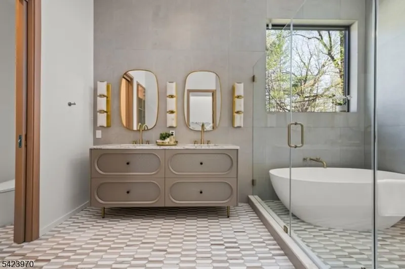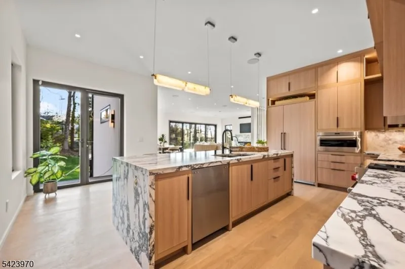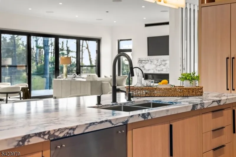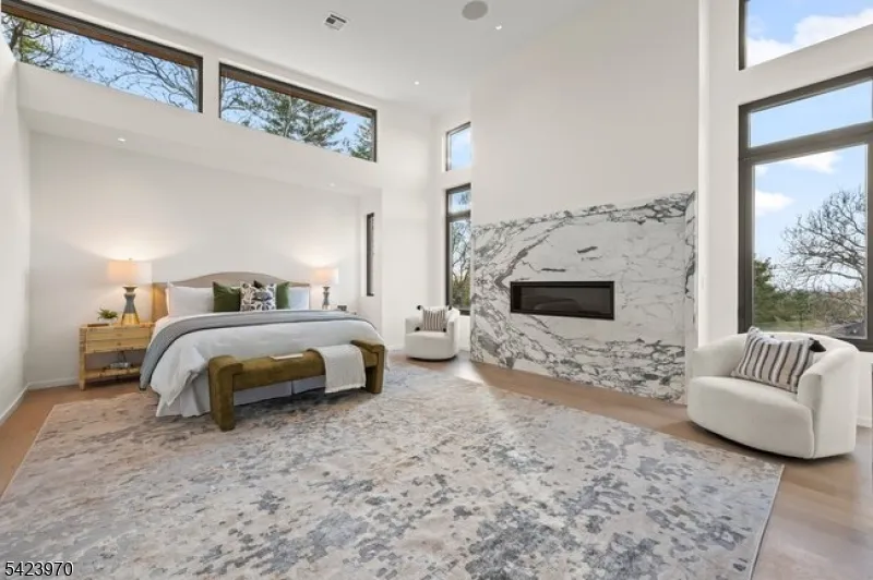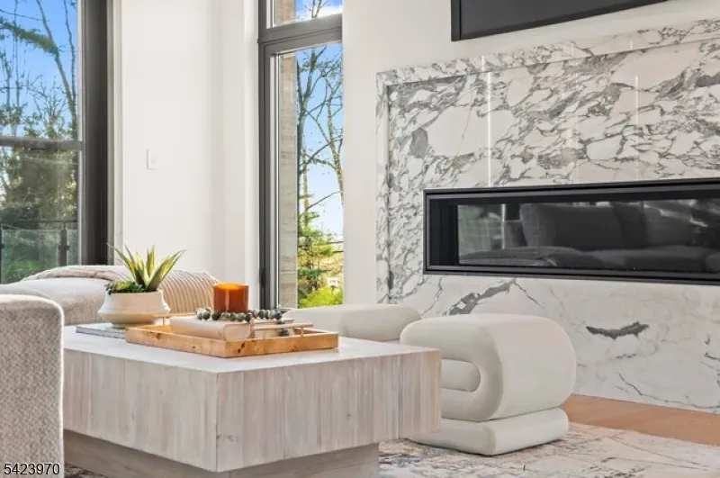 +"PublicRemarks": "9 Farbrook Dr is a stunning modern custom home by local SH Builder, showcasing the thoughtful design and craftsmanship behind many exceptional homes. Set on over half an acre, the home features a striking exterior featuring sintered travertine slabs and designer tile finishes. A dramatic 10-foot front door opens to a light-filled interior featuring 10-foot ceilings on both the first and second floors, a floating staircase with custom glass railing, and an open floor plan designed for modern living. Over 6,700 sq. ft, this 6-bedroom, 6 full bath, 1 powder room home is designed for both elegant entertaining and everyday living. The main level includes a formal living room, private office, first-floor guest suite, spacious family room with a linear gas fireplace, custom kitchen, and dining room with built-ins. A wall of glass opens to a large deck with glass railing, creating seamless indoor-outdoor living. Upstairs are four en-suite bedrooms with walk-in closets and heated bath floors, including a serene primary suite with a second gas fireplace. The walkout lower level features an additional bedroom and full bath, wine room, gym, and expansive recreation space opening to the backyard and potential future pool. Additional highlights include a two-car garage at kitchen level, a full-house automated lighting system controlled through a phone app, prewiring for future speakers, shades, audio, and TV, and close proximity to highly rated Deerfield School."