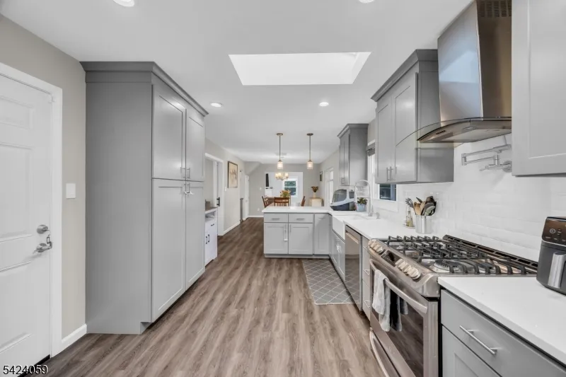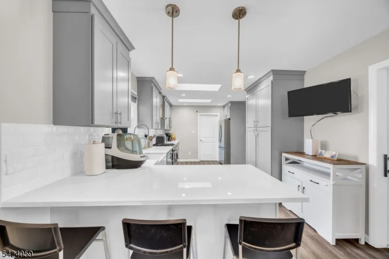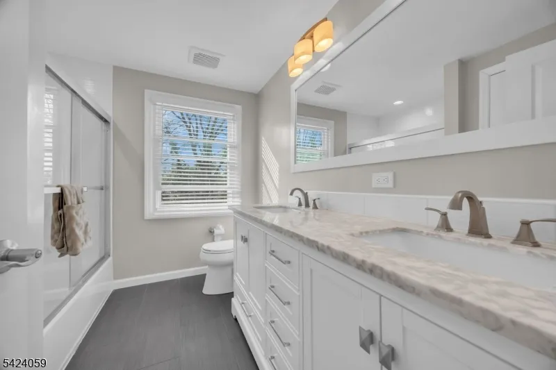 +"PublicRemarks": "STUNNING fully renovated Colonial with 5 Bedrooms,3 full baths, + office/rec room. If curb appeal is your vibe, look no further! Custom crafted to enjoy modern updates in a desirable neighborhood. Fully updated kitchen with Quartz counters, breakfast bar, newer SS appliances, skylights, and adjoining oversized pantry.. Formal dining room being used as added living space leading to a 1st floor spacious bedroom. Brand-new full bath on the 1st level as you enter. Large family room with woodburning FP. Downstairs you will also find a laundry-utility room. Laminate and engineered hardwood throughout. Upstairs you will find the Primary Bedroom w/ tons of natural light, recessed lighting, and a fully upgraded Ensuite bath w/ double sinks, marble counters, linen closet. You will also find 3 more bedrooms including a huge bedroom designed to give you ability to convert to addtl ensuite if you wish. Plus flex office-exercise room, and 2 linen closets. Major updates include new custom addition, siding, timberline roof, gutters, (1) Lenox HVAC,new ductwork for 2nd floor in 2024. 2-zone HVAC. All windows and doors have been replaced. Serene backyard with over $75k+ in upgrades. Fully fenced with paver patio along with hot tub and shed. Prime location for commuters. Less than 10 min to Rutgers University, 2 major hospitals, beautiful parks and golf courses. Easy access to Rt 287/NJ Tpk/Rt 1. Rare opportunity to own a home where design and living space come together seamlessly!"