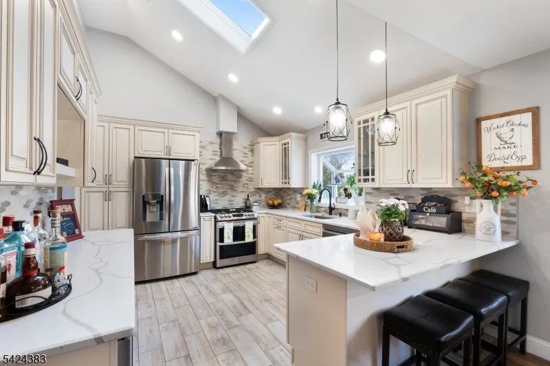 +"PublicRemarks": "Beautifully updated home in a desirable neighborhood offering style, comfort, and modern amenities throughout. Step into the two-story foyer and proceed upstairs to a spacious living room featuring a large window that fills the space with natural sunlight. The living room opens seamlessly to the dining room, creating the perfect setting for everyday living and entertaining.The open-concept kitchen has been newly remodeled and features soft-close cabinetry, glass-front cabinets, breakfast bar, stainless steel appliances, wine refrigerator, stainless steel exhaust hood, glass tile backsplash, and high ceilings enhanced by a skylight, pendant lighting, and recessed lighting. Three bedrooms are located on this level, each offering hardwood floors and spacious closets. The beautifully designed main bathroom includes a freestanding soaking tub, custom tiled shower with bench and niche, and a sleek floating vanity.The ground level offers a generously sized family room with fireplace and ceiling beams, an additional bedroom, full bath, and separate outside entrance ideal for extended living or guest space. A two-car garage with EV charger adds convenience. Enjoy the entertaining backyard featuring a covered paver patio and firepit perfect for relaxing or hosting gatherings, along with an above-ground heated pool. Solar panels provide added energy efficiency.. This gorgeous home is close to Esposito Park and Kumpf Middle School."