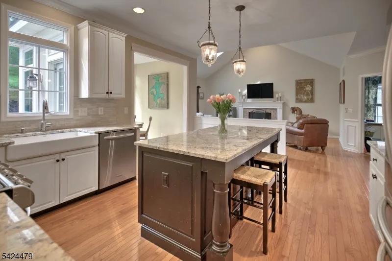 +"PublicRemarks": "Modern comfort in this beautifully crafted Colonial, with thoughtfully designed living space. Featuring generously room sizes, perfectly balancing luxury and everyday functionality. The family room, anchored by a cozy wood-burning fireplace, flows seamlessly into the kitchen and bright breakfast area. The updated kitchen is a true centerpiece, complete with a center island with seating, stainless steel appliances, a five -burner range, and sleek Granite countertops. The adjoining breakfast room provides a charming space for casual dining with direct access to the patio, ideal for indoor-outdoor living and entertaining. The main level offers versatility, featuring a formal living room, family room, private office, and a bonus great room providing multiple options for work, relaxation, or entertaining. Enhancing the home's airy feel are 9-foot ceilings on the first floor, 8-foot ceilings on the second, and cathedral ceiling in the family room and primary bedroom. Hardwood floors extend throughout the first level. The expansive finished lower level (1,357 sq ft) offers even more space to enjoy, including a powder room, TV/recreation area connected to a large gaming space, and a separate workout room perfect for unwinding. Community offers Pickel ball, tennis courts and walking paths. Recent new roof. Ideally located near top-rated schools, minutes to town, shopping, dining, parks, library, train station, and major highways offering both convenience and a sought-after lifestyle."