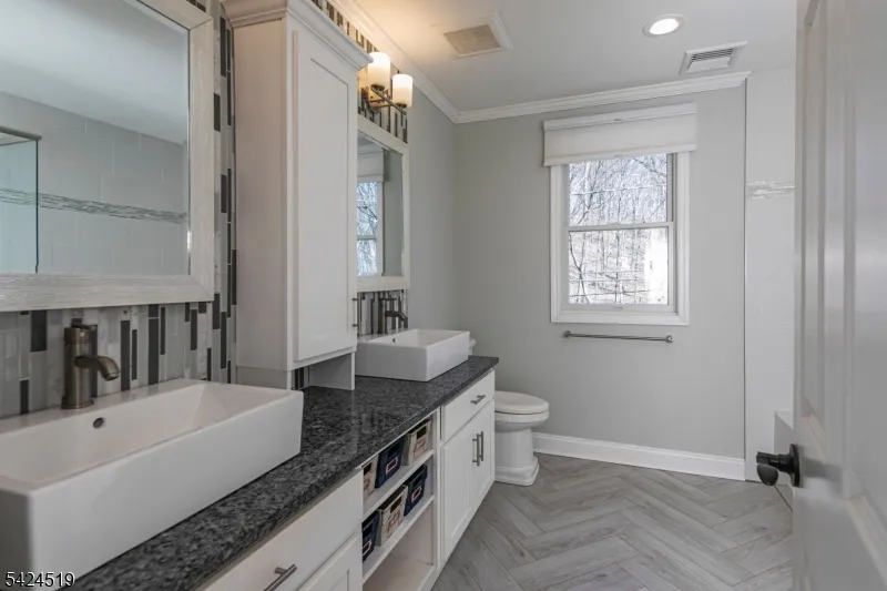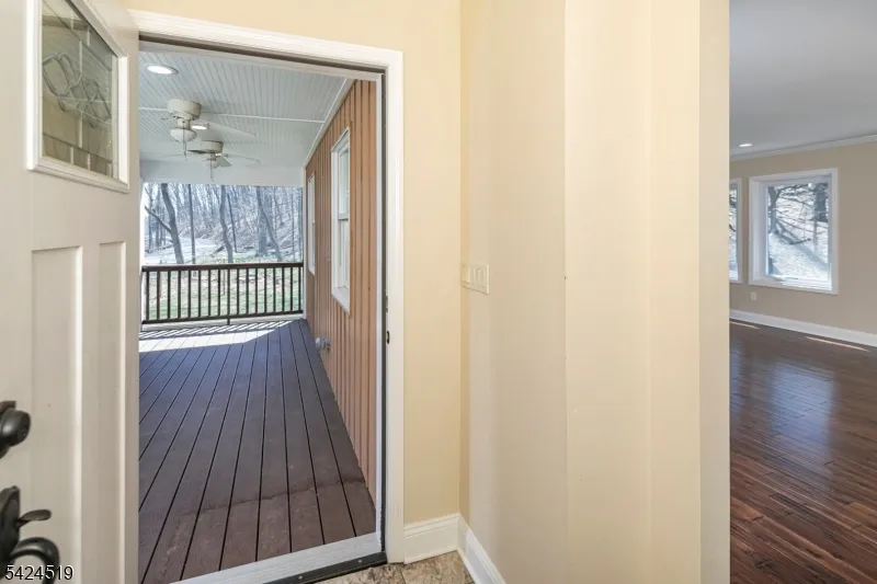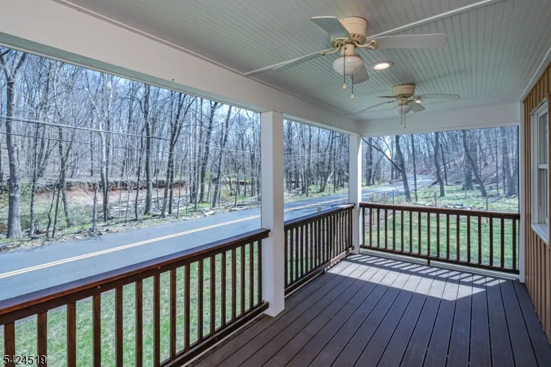 +"PublicRemarks": "In a serene section of Skillman, where the wooded landscape creates a soothing naturalenvironment to come home to, this custom-built house supports a lifestyle defined by calm,comfort, and thoughtful design. A screened front porch greets you first, inviting long, unhurriedmornings and evenings framed by trees and filtered light. Inside, the home unfolds with a senseof craftsmanship and clarity. The kitchen anchors the main level, conceived as both a functionalworkspace and a social centerpiece. Quartz surfaces wrap the room in a clean, modern finish,while a suite of stainless-steel appliances supports serious cooking. A built-in double oven witha warming tray, microwave, dishwasher, refrigerator, and a five-burner cooktop with pot filler andhood reflect a deliberate attention to detail. Hardwood floors run through the kitchen, living, anddining rooms, providing warmth and continuity. Crown molding adds a tailored architectural note.Each of the three bedrooms is designed as a private suite, complete with its own full bath. Theprimary suite stands apart with a generous custom walk-in closet and a bath that reads like apersonal spa. Two vessel sinks sit atop refined surfaces, complemented by a soaking tub and aseparate shower. Outside, ample parking accommodates visitors with ease. A thoughtfullyplaced shed and an attractive privacy fence create structure without interrupting the organic feelof the setting. The patio and deck extend the living space outdoors."