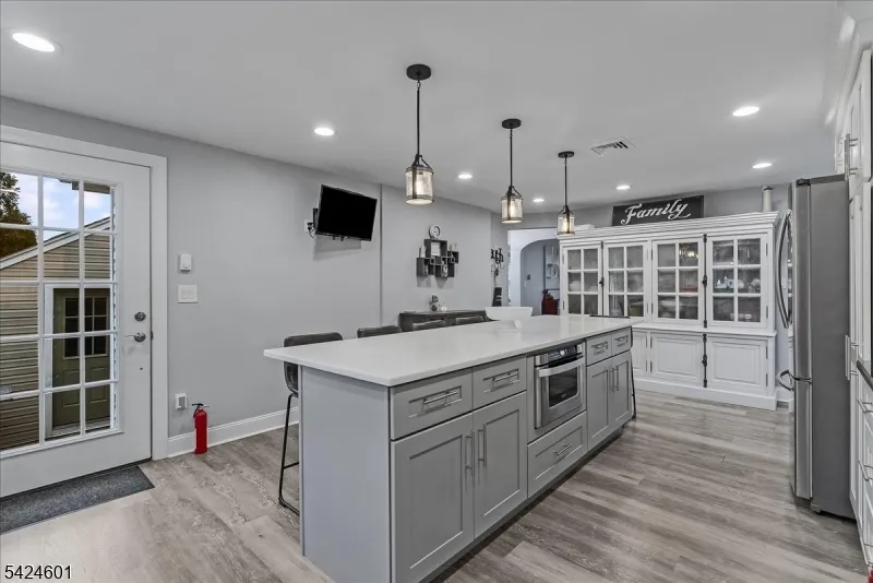 +"PublicRemarks": "Beautifully updated in highly sought-after Whippany, featuring low taxes, newer roof, highly rated schools, and unbeatable commuter convenience. Ideally located near Rt 24, 10, 80, and 287, just 2 miles from both Convent Station & Morristown Station. Newly Expanded driveway 2021, Step inside to a bright and inviting main level offering two bedrooms, a brand-new full bath with a 6' addition, a comfortable living room, and a dining room with direct access to the Trex deck. The heart of the home is the stunning gourmet kitchen addition (2021) a true chef's dream showcasing granite countertops, glass backsplash undermount LED lighting, a massive 9.5-foot quartz island with seating for 6-8, a six-burner stove, stainless steel appliances, and elegant crown molding throughout. Upstairs offers private primary bedroom retreat, complete with two closets and updated bathrooms. Ceiling fans installed throughout. Fully finished basement offers a cozy family room, additional recreation area with built-in cabinetry, and a new full bathroom (2022). Double doors lead to a large storage area housing utilities and laundry. A newer hot water heater (2019).The attached 1-car garage and widened driveway accommodates up to seven cars. Fully fenced backyard is an entertainer's paradise featuring a large stamped concrete patio, a high-end steel-roof gazebo, an new above-ground pool 2020 with attached deck new in 2021, and a generously sized shed."