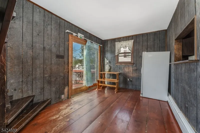 +"PublicRemarks": "Charming 3"4 bedroom Cape Cod offering over 1,800 sq ft of living space. Main-floor owner's suite with full bathroom ideal for single-floor living. Bright living room features hardwood floors, a wood-burning stove, and a large bay window. Front room currently set up as laundry, but easily converted to a 4th bedroom or home office. Spacious eat-in kitchen with abundant cabinet and counter space. Rear flex room with sliding glass doors opens to a full-width deck overlooking a generous, fenced backyard. The second floor boasts two very large bedrooms with raised ceilings and exposed beams. Super Efficient Gas Hot Water Heating System installed in 2025, alley access, and a one-car garage located under the rear of the house. Convenient to shopping and restaurants; Routes 78 and 22 are under 5 minutes away. Sweet home ready for your updates and personal touches."
