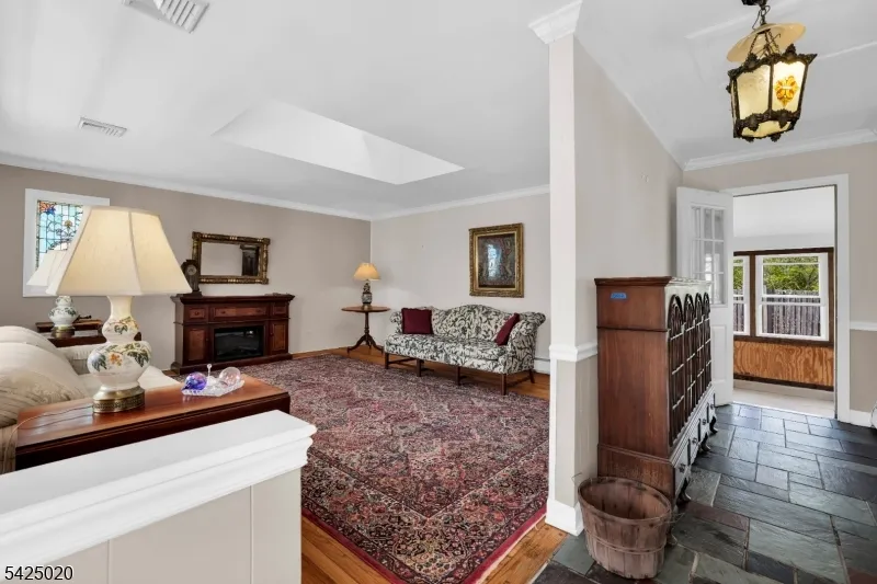 +"PublicRemarks": "Wonderful home in great in-town location set on .38 acre park-like property. Dead end street. Wood floors, central air, natural gas boiler-multi-zone heat, crown molding. Featuring spacious front porch and 3 season room overlooking beautiful front and rear yard with mature plantings. Fantastic family room addition with skylight and triple front window. Formal dining room, formal living room with fireplace, bay window and large closet. Two bedrooms and main bath complete the first floor. Finished second level with one bedroom with two skylights, powder room and storage closets. Unfinished basement plus bonus crawl space for more storage under family room addition. Convenient location with shopping, restaurants, parks, town lake, golf course, bike/pedestrian path, public transportation and more. Enjoy all that Pequannock Township has to offer! Minutes to major highways. Great school system."