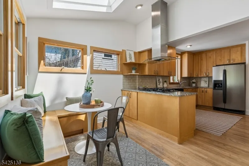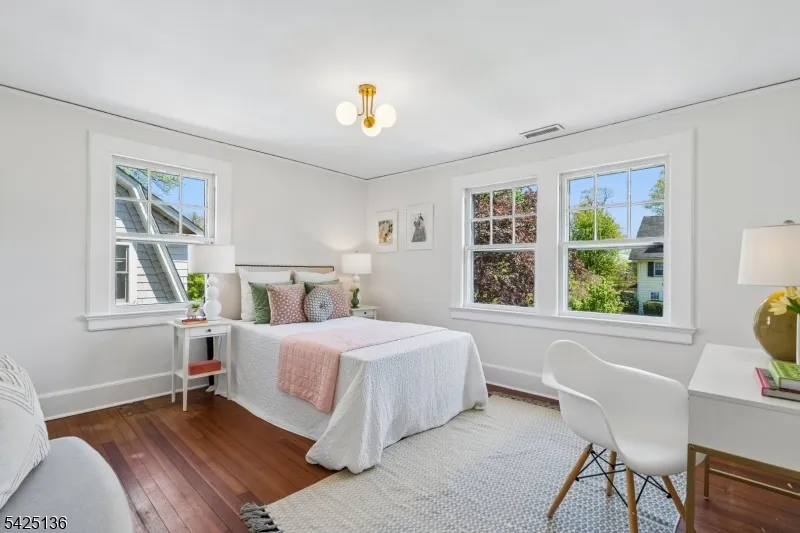 +"PublicRemarks": "Welcome to this exceptional home in the heart of Upper Montclair Village. Situated on a quiet, tree-lined street, this property offers a true neighborhood feel while being just blocks from shops, cafes, parks, the library, top-rated schools, and convenient NYC-bound bus and train service.This charming five-bedroom Colonial features a welcoming front porch and timeless architectural details, including hardwood floors and classic moldings throughout. The spacious living room with a wood-burning fireplace flows seamlessly into a charming sunroom and a formal dining room with a window seat. The updated kitchen is designed for both function and style, offering stainless steel appliances, custom cabinetry, two large skylights, and a generous pantry. A bright breakfast area with built-in seating opens to a deck overlooking a spacious, level backyard ideal for entertaining or everyday enjoyment. The second floor includes four well-proportioned corner bedrooms and a full bath. The third level provides flexible living space with a recreation room, fifth bedroom, sink with potential for future bath, and ample storage. Additional features include a new roof, two-zone central air conditioning, and a detached two-car garage. With multiple options for home offices, bonus spaces, and entertaining areas, this home effortlessly blends classic charm with modern convenience in a fabulous Upper Montclair location!"