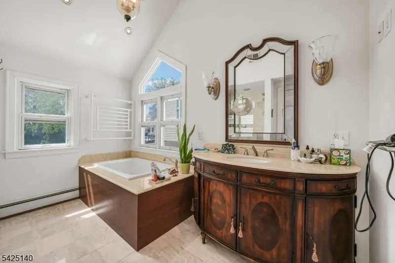 +"PublicRemarks ": "Neighborhood standout with zero compromises. Located only 13 miles from NYC The first floor delivers exactly what today's buyers want: a spacious living room flowing into a custom eat-in kitchen with granite countertops, breakfast peninsula, premium appliances, gas cooktop, double wall oven. Upstairs, the primary suite feels like a retreat with custom-lit closets and access to a third-level bonus room ideal for a private office, gym, or creative space. The primary bath is dialed in with a soaking tub, oversized shower, private water closet, and custom vanity. A vaulted-ceiling second bedroom adds character, while the third bedroom easily doubles as a home office. Outside, the property continues to deliver. A two-car-wide paver driveway, clean walkways, Security System & Cameras Included. "