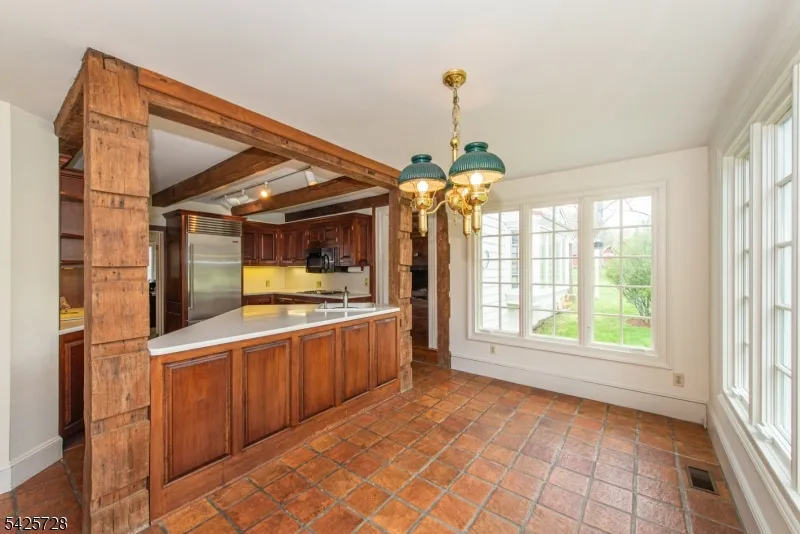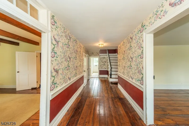 +"PublicRemarks": "A rare opportunity to own a piece of history! This magnificent property, known as Linnfield Farms, built in 1750 consists of nearly 11 acres with a Federal style house previously owned by James Linn, both Congressman & Revolutionary war veteran. Charm & details can be found in every room -From the original wide plank flooring to the grand entrance hall to the 3 oversized fireplaces. Formal living & dining areas, updated country kitchen w/ breakfast nook & island. Large family room for entertaining w/ fireplace, wet bar, beamed ceiling & direct access to patio. 1st floor laundry, powder room & bedroom w/ensuite complete this level. 2nd floor boasts primary bedroom w/ sitting room, along with 3 additional bedrooms, 2 full baths, sink & jetted tub. Lower level features beautiful original room of stone, brick, oversized beams, fireplace & walkout, perfect for billiards & game room, storage & utility room. Sprawling lawns lead to 2 large barns located on separate drive. Nature, tranquility & privacy located close to train, highways, dining & shopping make this property a true gem. House sits on 3.76 acres $11,946 tax. Farm assessed parcel 7.1acres $73 tax. Home was added to National Register of Historic Places in 1988 for it's significance in architecture & politics/government."