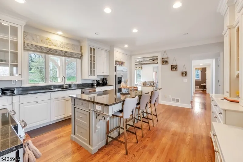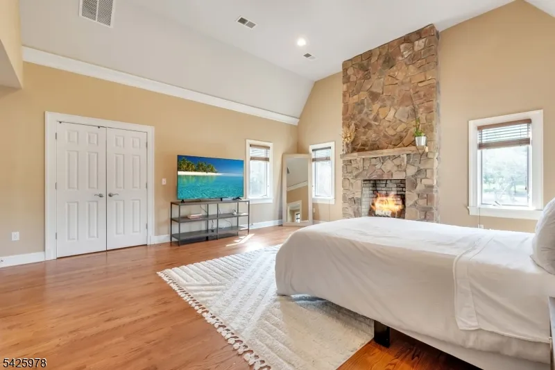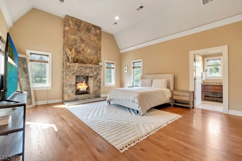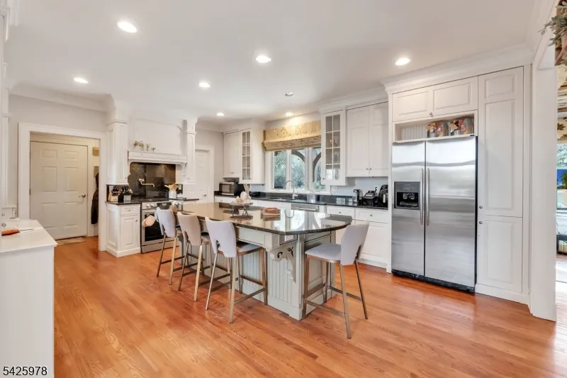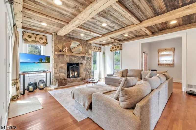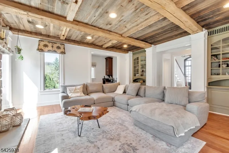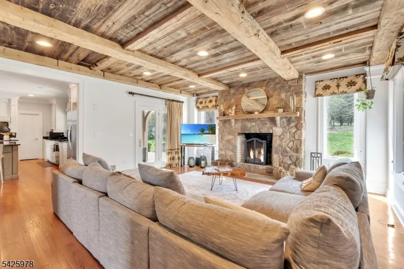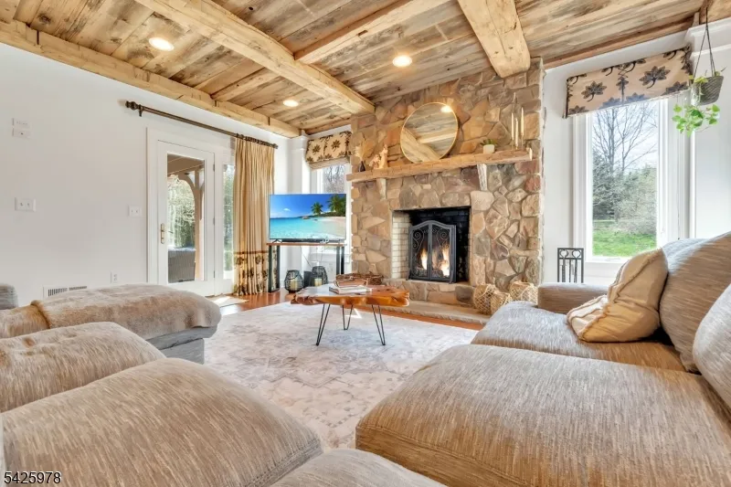 +"PublicRemarks": "Welcome to this stunning custom home thoughtfully designed & beautifully maintained, this residence offers a seamless blend of warmth, character, & modern functionality. Step inside to find an inviting living room highlighted by a cozy wood-burning stove & a striking reclaimed wood ceiling, creating a perfect balance of rustic charm & comfort. The spacious kitchen is a true centerpiece, featuring custom cabinetry, granite countertops, a large center island, pantry, & a butler?s pantry?ideal for both everyday living and entertaining. The kitchen opens to a dramatic two-story dining room with a wall of windows that flood the space with natural light. An open second-floor hallway overlooks the dining area, enhancing the home?s airy & architectural appeal. All four bedrooms feature soaring ceilings, including a luxurious primary suite complete with a floor-to-ceiling fireplace, ample closet space, & a spa-inspired bath.The third level offers a dedicated office along with easily accessible storage?no pull-down attic stairs required. The finished basement expands your living space with a media room & a bar area with room for a pool table, perfect for entertaining or relaxing at home. Outside, enjoy beautifully landscaped grounds with mature trees, landscape lighting, & a serene patio setting?ideal for gatherings or quiet evenings surrounded by nature. A truly one-of-a-kind property offering custom craftsmanship and exceptional living."