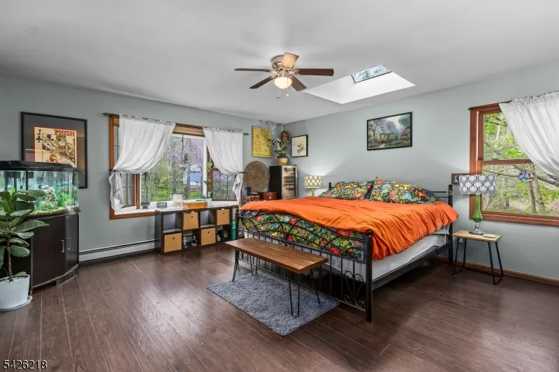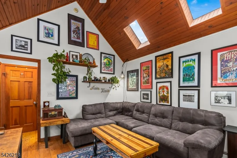 +"PublicRemarks": "A storybook setting with modern day vibes. From the babbling Brook to the stone fire place to the what seems like a Secret Garden patio, this home creates an environment like no other. Upon entering, you'll fall in love with the warmth & character of the Parlor, with a wood burning fire place, a cleverly design Pocket Office tucked under the stairwell, the Powder Room with a chic wall mounted sink & the rustic original hardwood floors, grab a book & a cup of Jo, this is the perfect quiet spot. Around the corner is an updated modern day kitchen with white Granite counters tops, striking blue cabinetry, added open shelving & tongue & groove ceiling that extends into the Dining area. The Dining Room has a vaulted ceiling with exposed beams & tons of natural light. The Great Room is stunning with vaulted tongue & groove ceiling, skylights & a large picture window overlooking the yard & brook. This is a great entertaining spot! Tucked in the back is the spacious Primary retreat with a private Ensuite. The upper level offers 2 additional rooms each with their own appeal, one simple & timeless, the other enriched with warmth & character. Need more room? The Ground Level offers additional living space, currently a workshop, this room is ideal for a home office, gym, game room PLUS it has a private entrance! The true gem of this home lies outdoors, with the pond, rock walls, gardens and of course the babbling Brook. Escape to the private patio & enjoy your enchanted haven."