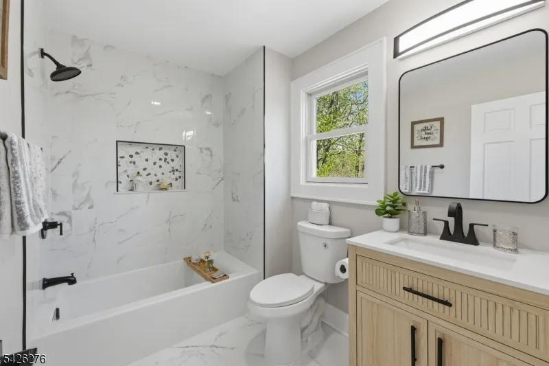 +"PublicRemarks ": "Welcome to this fully renovated 3-bedroom, 2.5-bath home offering a bright, flowing layout filled with natural light and peaceful wooded views. The main level features spacious living areas, a beautifully updated kitchen with center island, and a private office ideal for working from home or flexible use. Upstairs offers three well-sized bedrooms and a full bathroom. The finished basement adds valuable bonus space with its own full bathroom, perfect for recreation, a gym, guest space, or additional storage. Outside, enjoy a large backyard with an expansive deck, ideal for entertaining or relaxing in the natural setting. Move-in ready with tasteful updates throughout. "