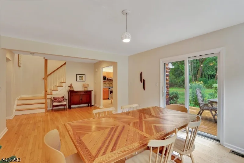 +"PublicRemarks": "Set on a quiet, sunny acre at the edge of Hopewell Boro, this light-filled, thoughtfully remodeled home combines a rare blend of privacy and open space with expansive nature views. All within close proximity to local dining, shopping, and commuting routes. Airy and open with plenty of room for entertaining, the main level features generously sized dining, living, and family rooms that flow easily into a central kitchen. A dedicated home office, offering flexible use as a workspace or multipurpose room, overlooks acres of undeveloped woods. Upstairs, a bright central landing leads to a primary bedroom with a walk-in closet, a recently renovated (2019) bath and two additional spacious bedrooms, all with large custom windows. New carpeting was installed throughout the upper-level bedrooms (2025) and all bedrooms were repainted (2026). Outside, enjoy morning coffee or summer dinners and relax on the large, private rear deck surrounded by mature gardens and ample green space. An attached garage & full basement provide additional flexibility and storage. Recent improvements include new kitchen flooring and refrigerator (2025), as well as a new washer & dryer (2024). Additional updates include a water softener (2017) and an upgraded drainage system with an outdoor French drain (2013). Ideally located in Hopewell Township in the Hopewell Valley Regional School District, just minutes from Princeton & Lambertville, with convenient access to major highways, rail lines, and Philadelphia."