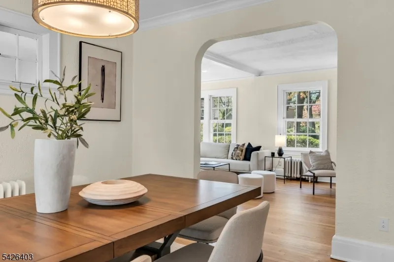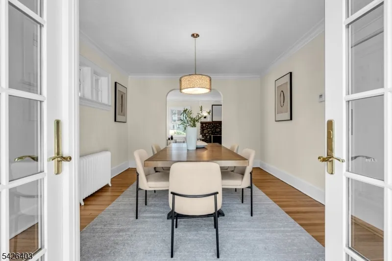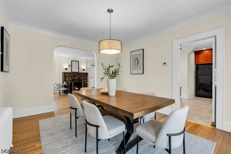+"PublicRemarks": "This classic 1929 Colonial blends timeless character with storybook charm and a warm, inviting feel throughout. Passing beneath the entryway's original millwork and leaded-glass transom window, you're welcomed into sun-filled spaces defined by high ceilings, a graceful arched opening, and an easy flow. The oversized living room is a standout, centered around a stately original stone fireplace and lined with windows that bring in beautiful light throughout the day. Just beyond, a tucked-away den sits behind French doors, offering the perfect private office or quiet retreat, with a bay window that adds charm and dimension, along with original casement windows overlooking the dining room. The dining room flows effortlessly into the kitchen and opens outside through French doors to a patio and deck, ideal for everyday living and entertaining. The eat-in kitchen features cherry-tone cabinetry, tall pantry cabinets with pull-out shelving, and space to gather. Upstairs, the primary bedroom is spacious, with two additional bedrooms that offer comfortable proportions. A walk-up attic adds a flexible bonus space for play, work, or creativity, plus separate storage. The finished basement provides additional room for recreation, laundry, and storage. Outside, mature landscaping, manicured lawns with irrigation, and a detached two-car garage complete the setting. A home with presence, character, and a layout that simply feels right, set in a wonderful neighborhood."
