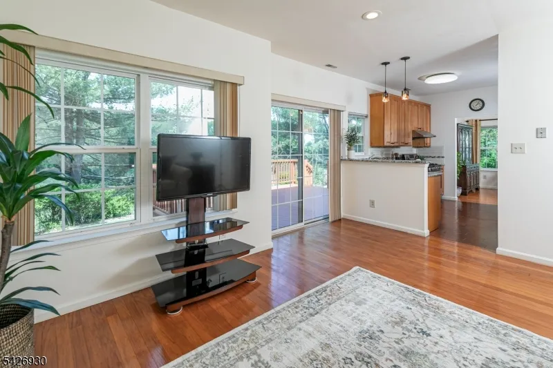 +"PublicRemarks": "Just down the street from a vibrant park featuring tennis and basketball courts, a playground, and restrooms, this Woodsedge Bainbridge-style home offers a spacious and detached lifestyle. The home boasts a large, open floor plan with ample room to stretch out, complemented by a private two-car garage. From the deck, kitchen, and family room, the view extends to beautiful open space providing a rare and calming backdrop that evolves with the seasons. Natural light is a constant presence, filtering through transom-topped windows to highlight volume ceilings and glossy wood floors. The living and dining spaces flow together seamlessly, anchored by a warm fireplace. The family room transitions naturally into a refreshed kitchen, where recent updates provide both modern function and glass doors open wide to a generous deck. The upper level features three thoughtfully arranged bedrooms and a conveniently located laundry area. The primary suite serves as a private retreat, complete with a spacious walk-in closet and its own dedicated bath. This home is exceptionally well-maintained with significant recent improvements, including a recently replaced roof, water heater, and most windows. The kitchen has been refreshed and modernized for function and style and both upstairs bathrooms feature updated tile for a current and enduring feel. Princeton mailing address and Montgomery Township amenities, this location perfectly balances peaceful suburban living with easy access to Princeton."