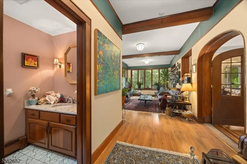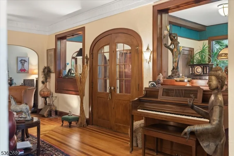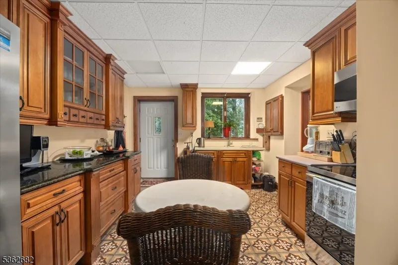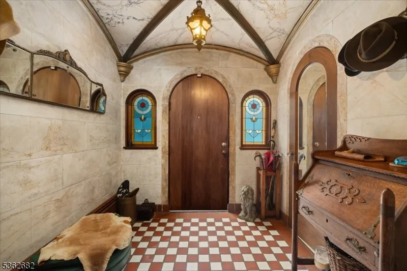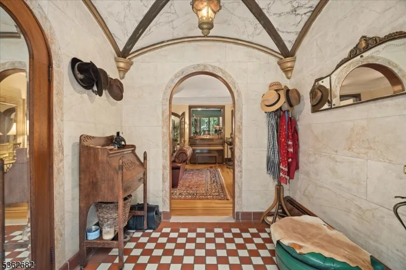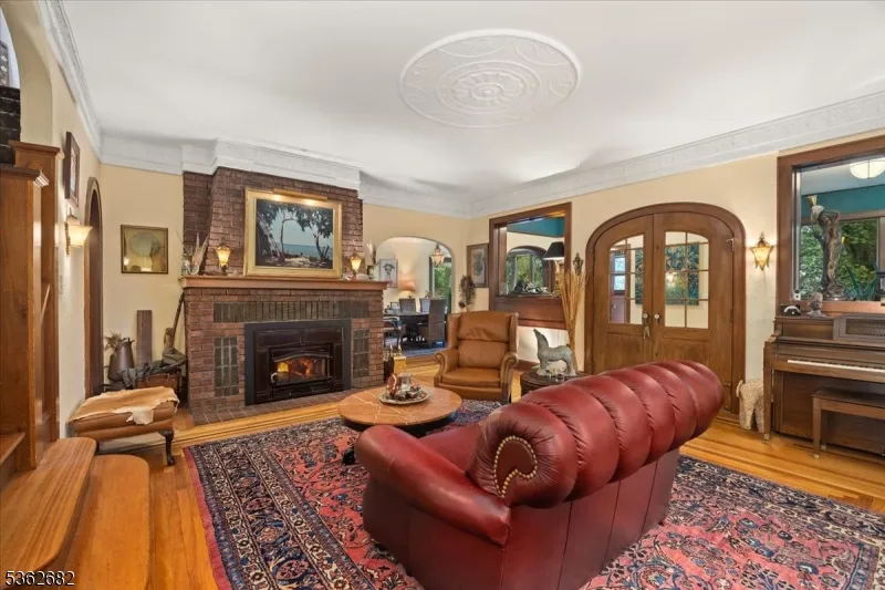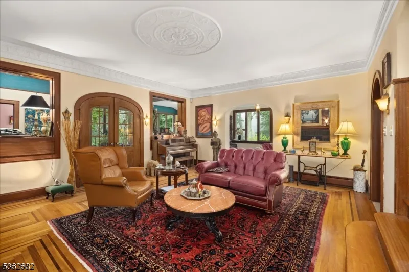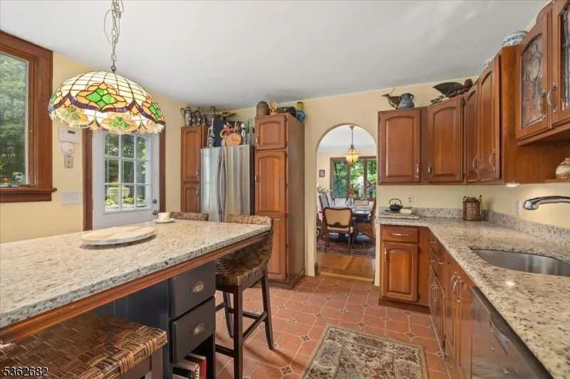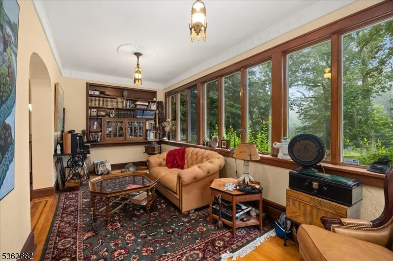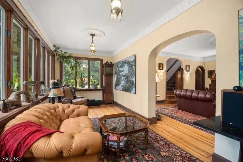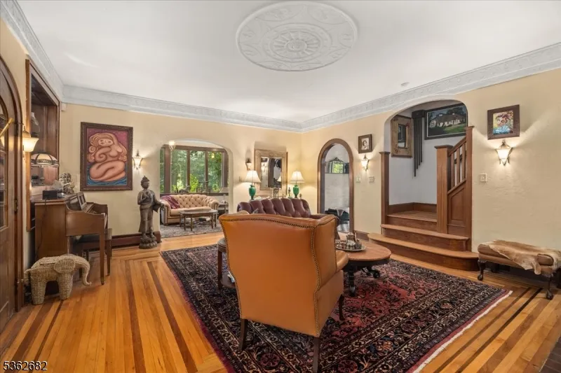 +"PublicRemarks": "Welcome to this beautiful custom Mediterranean-style home in the desirable Backhus Estates, set on just over 5 acres of lush, private property. Originally built in 1937, this home is filled with charm and character you won't find anywhere else. Enter through the arched foyer into the spectacular living room with custom hand-carved mahogany moldings, ornamental trim, high ceilings, original lighting and a wood burning fireplace. An arched doorway leads to the conservatory, surrounded by custom bookcases, and a cozy library just off the living room. The large formal dining room with a french door that opens to the patio and picturesque landscapes of surrounding area. The eat-in kitchen offers plenty of space and direct access outdoors for easy indoor-outdoor living. Upstairs you'll find the primary bedroom with its own bath, along with three additional bedrooms, an office, and another full bath. The finished walk-out ground level adds additional living space, complete with a full bath and kitchen perfect for guests, a studio, or an in-law suite. Outside, enjoy oversized circular driveway, mature trees, tranquil surroundings that make this property feel like your own private retreat. New solar panels with battery back up and two EV charging stations. This unique estate blends timeless craftsmanship with endless potential. You are not only buying a home but buying a piece of history."